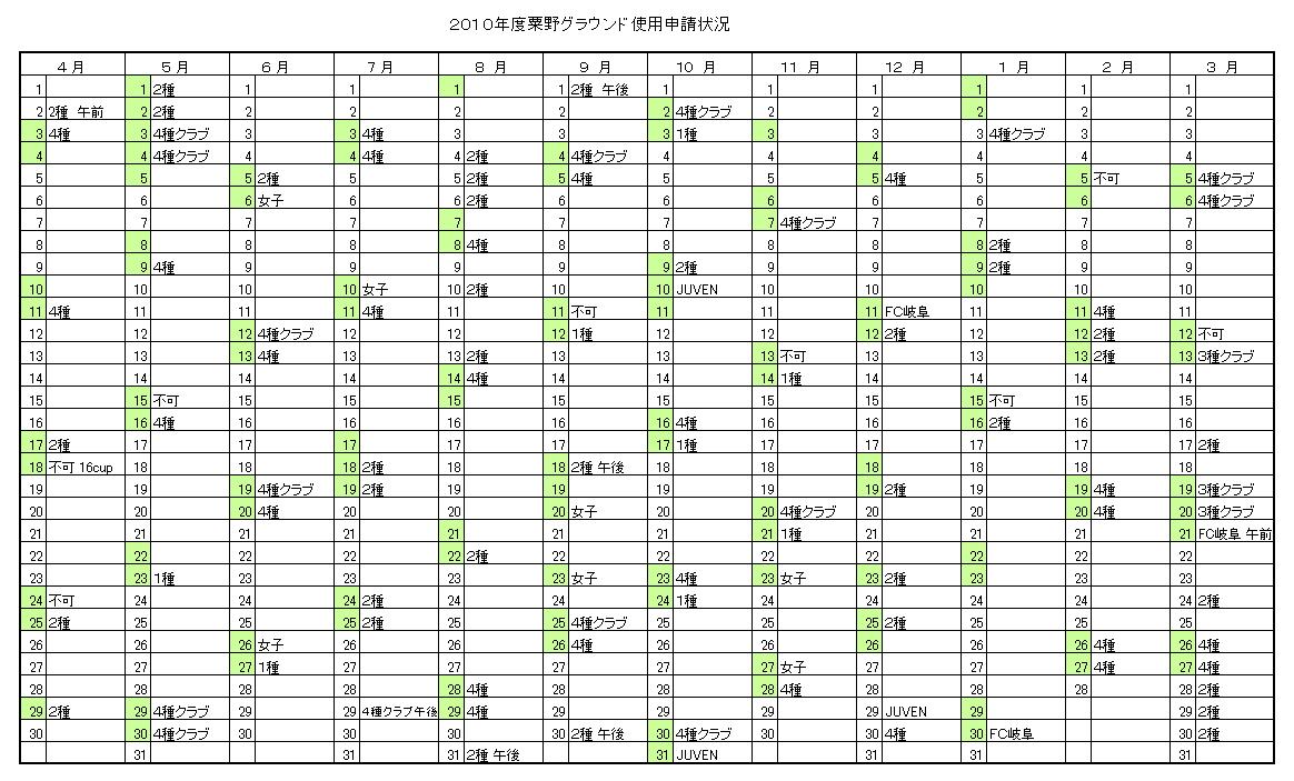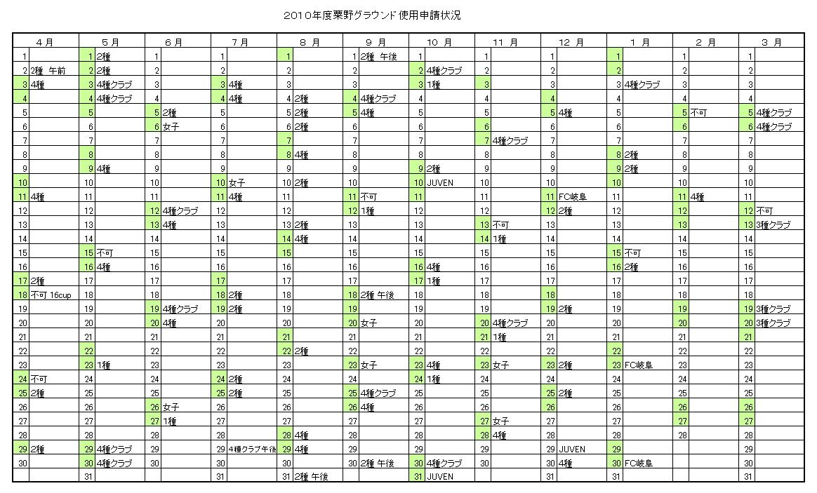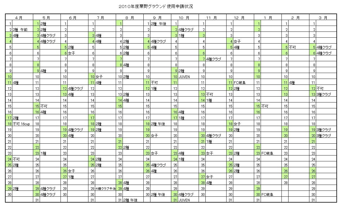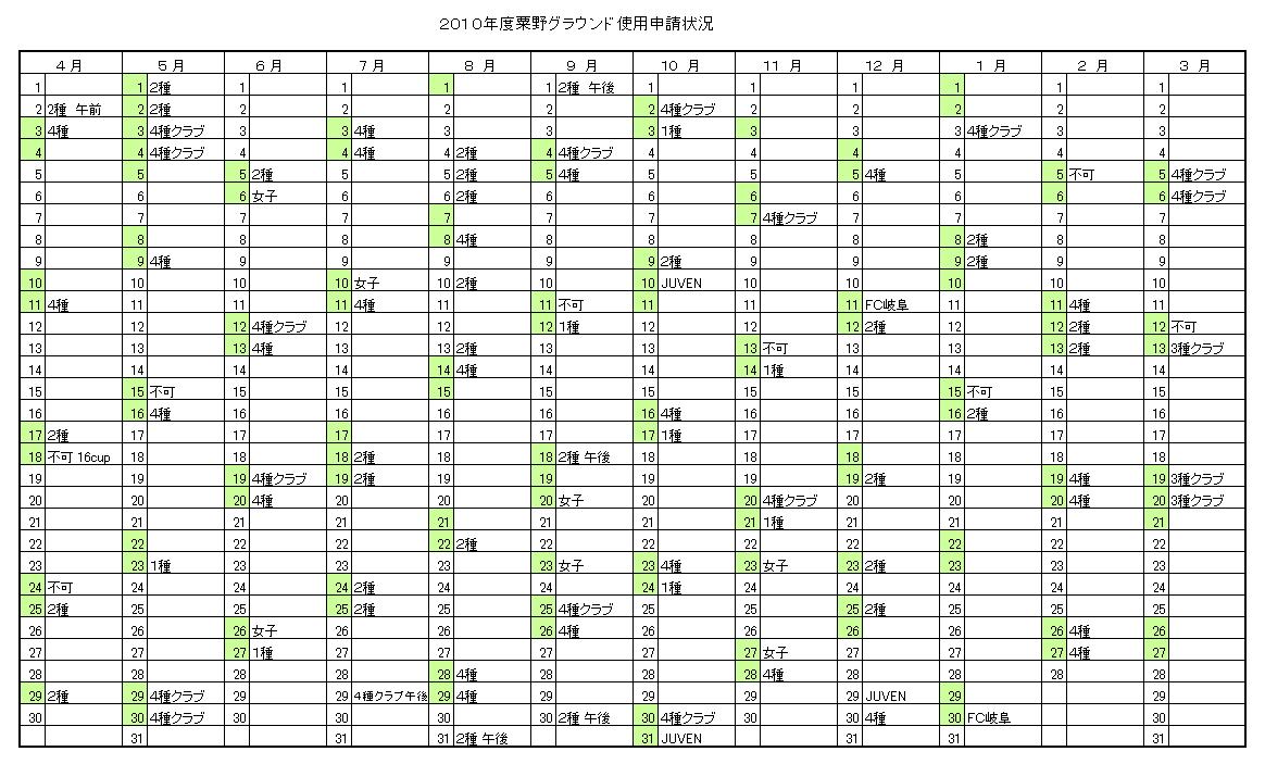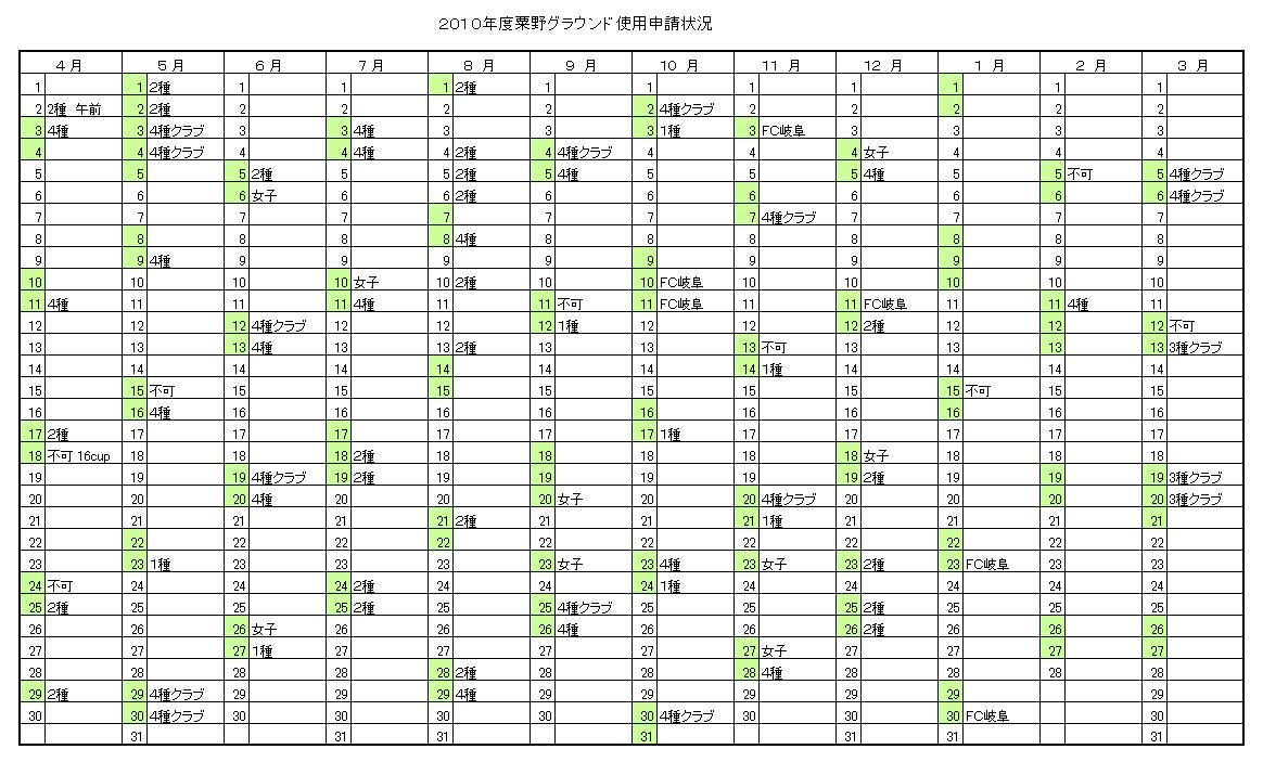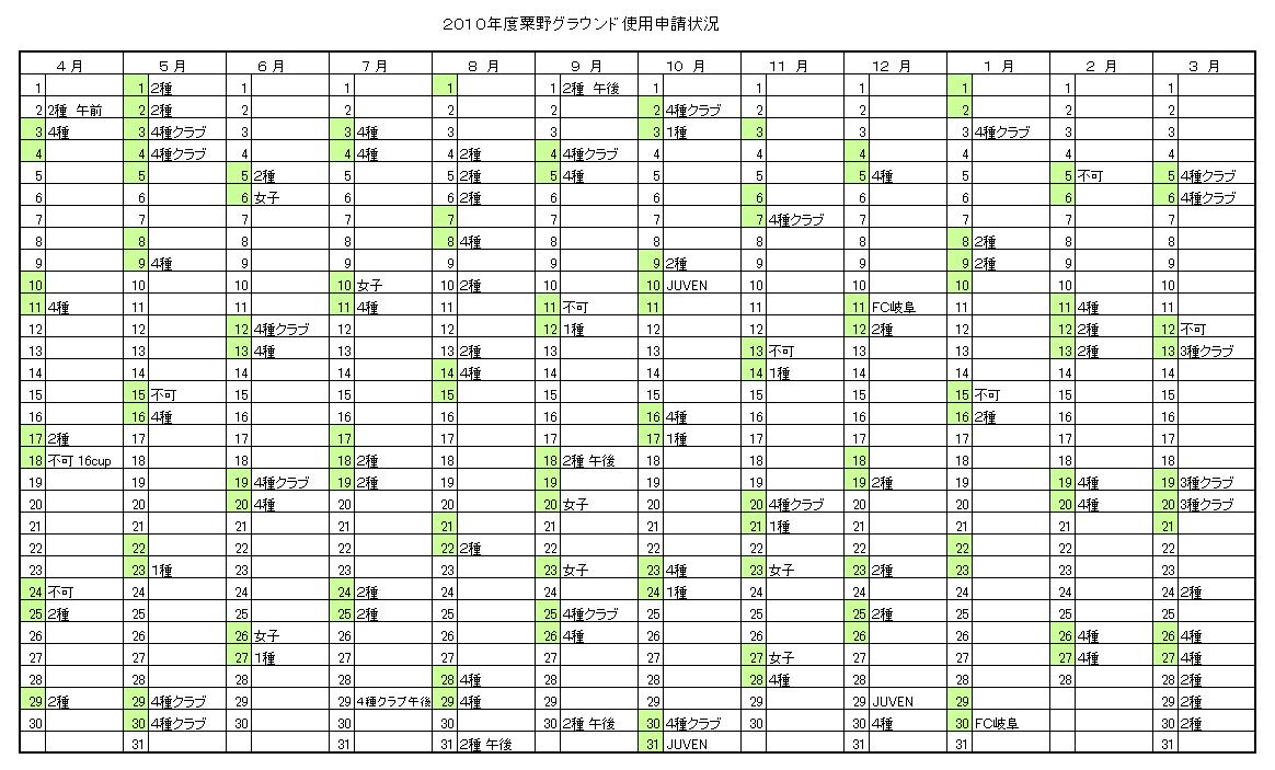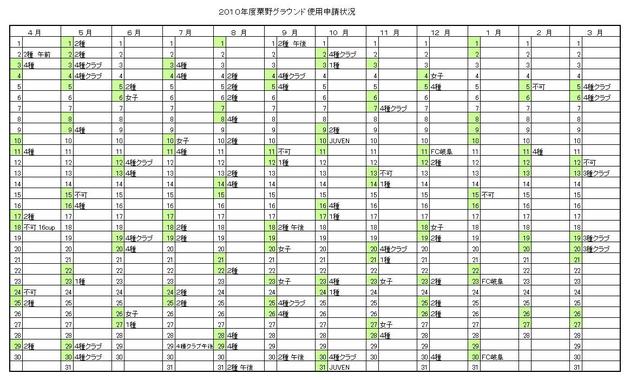 粟野グラウンド申請状況