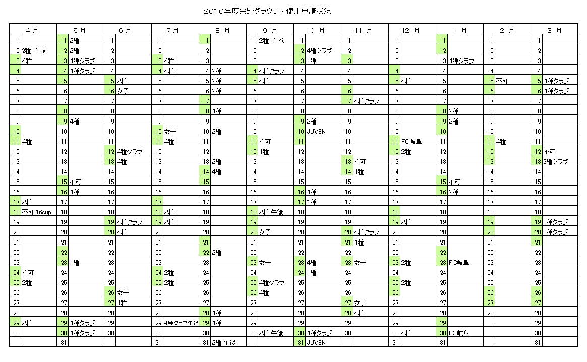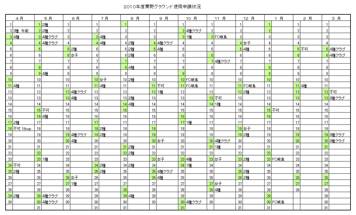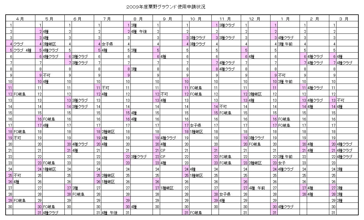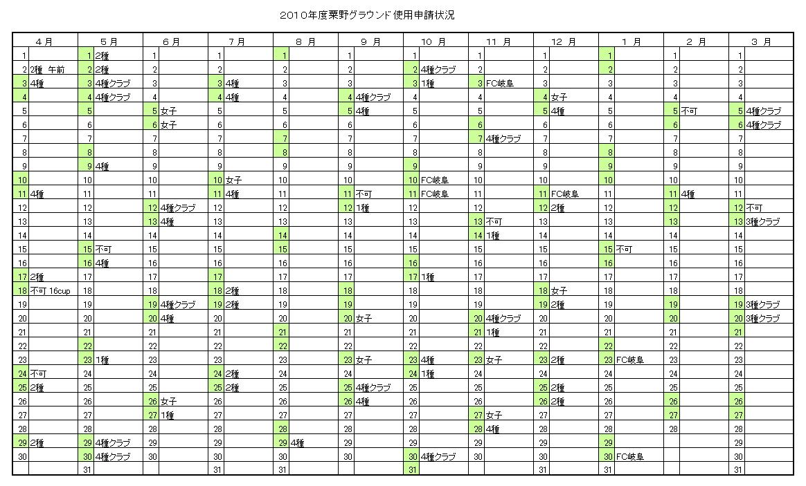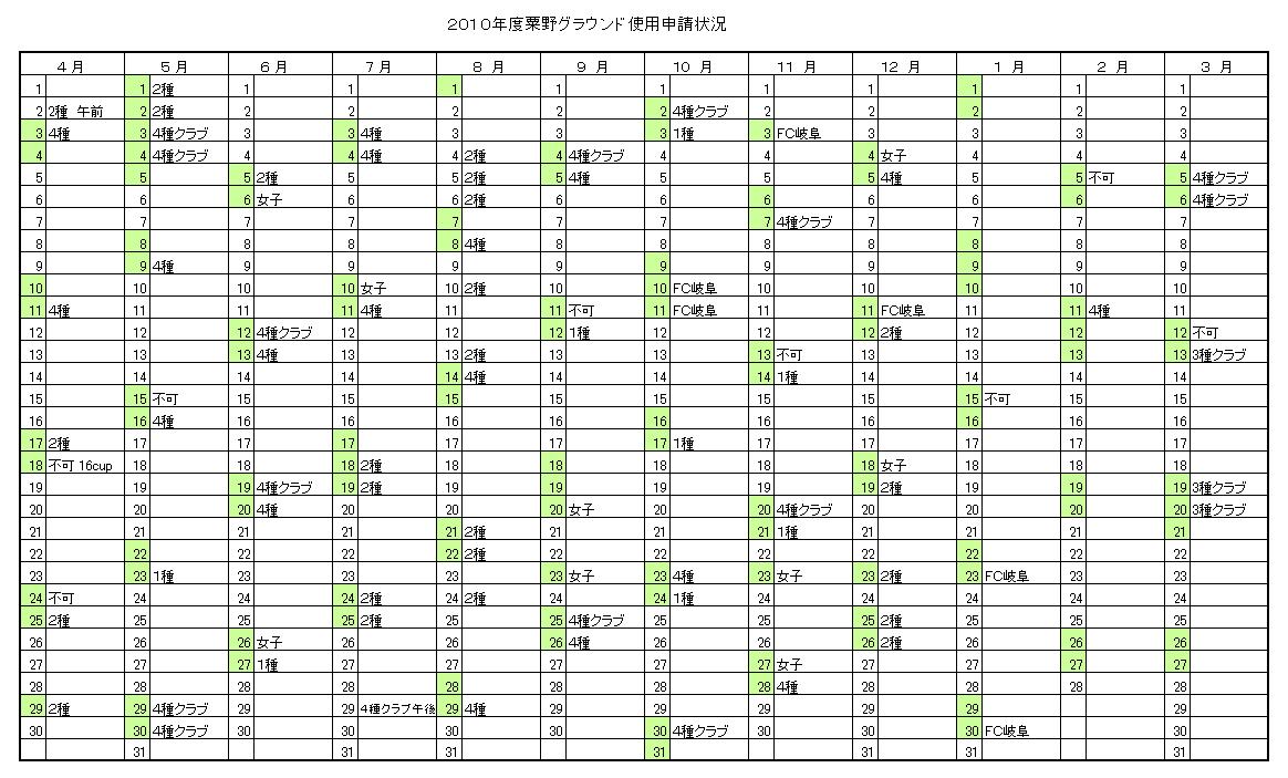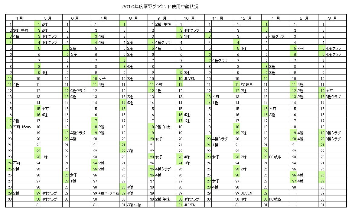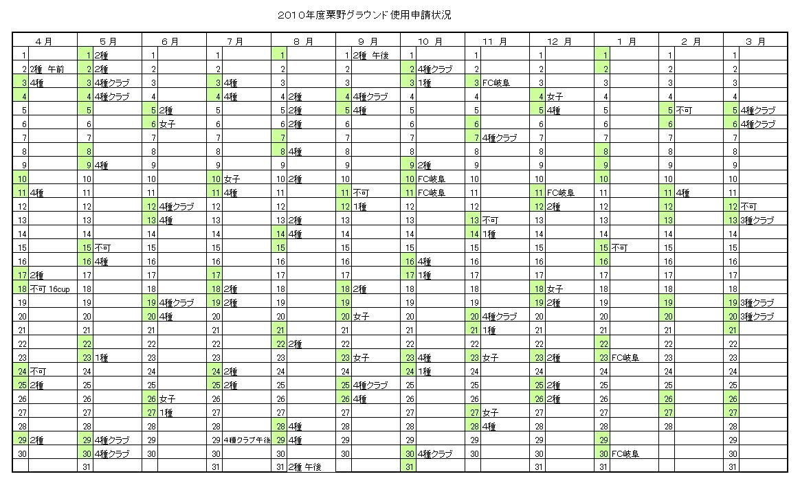 粟野グラウンド申請状況