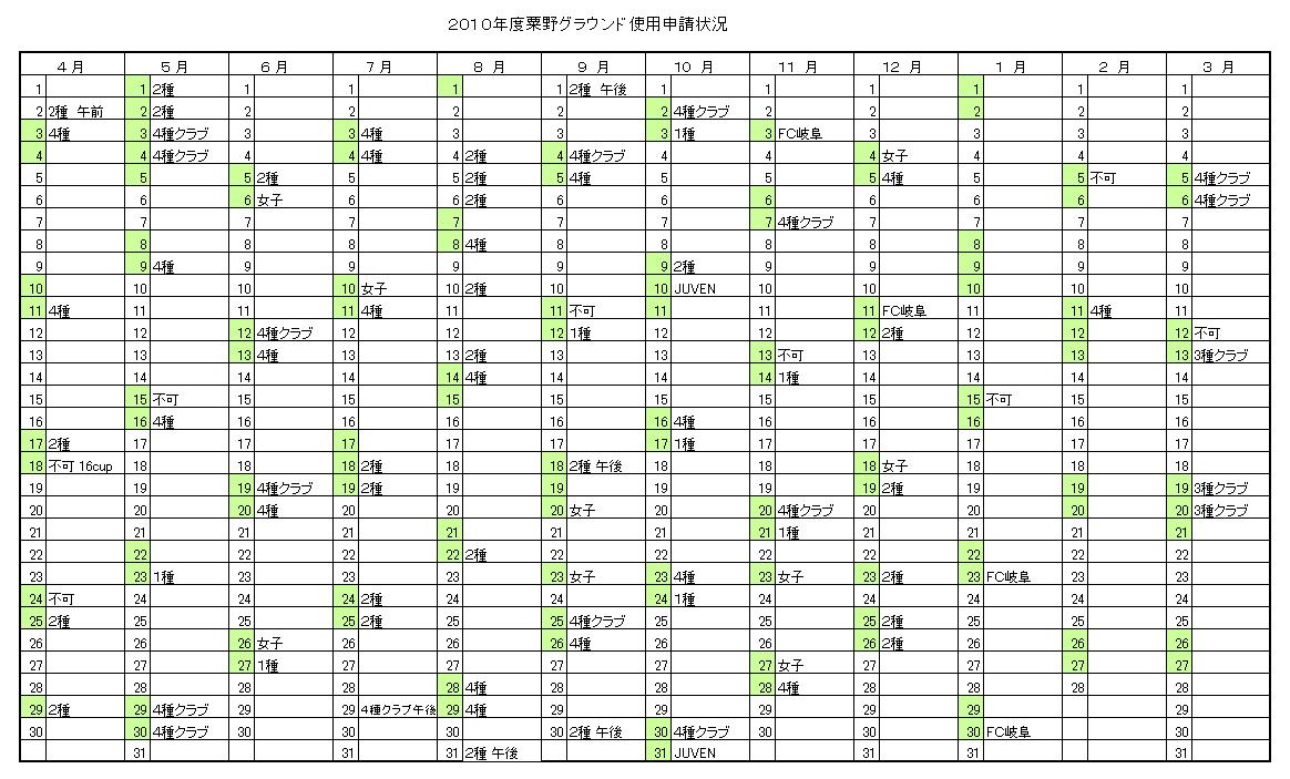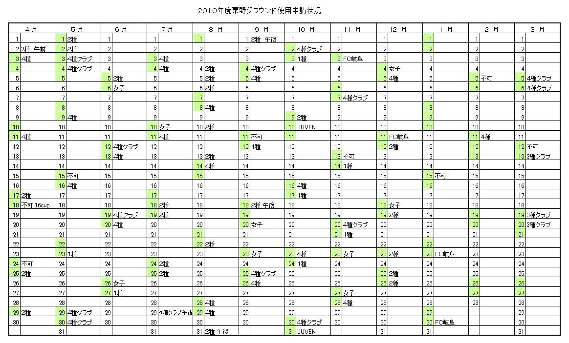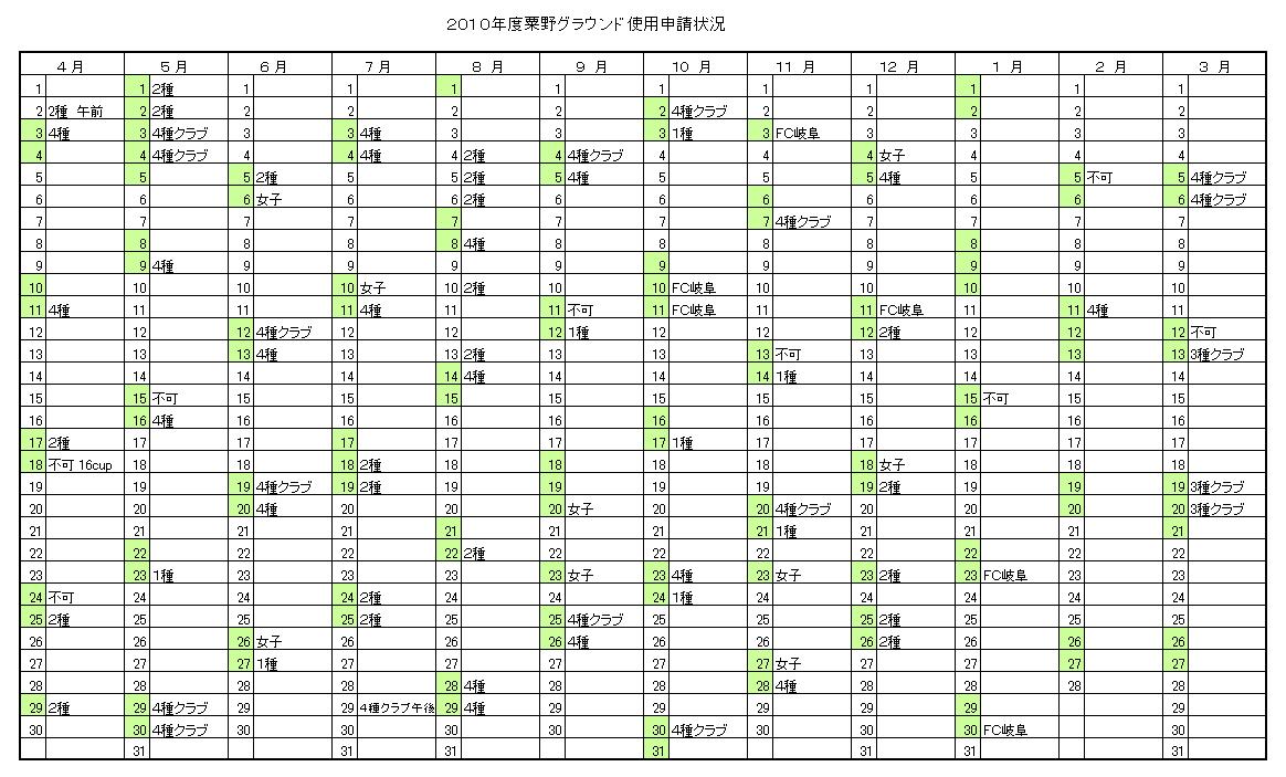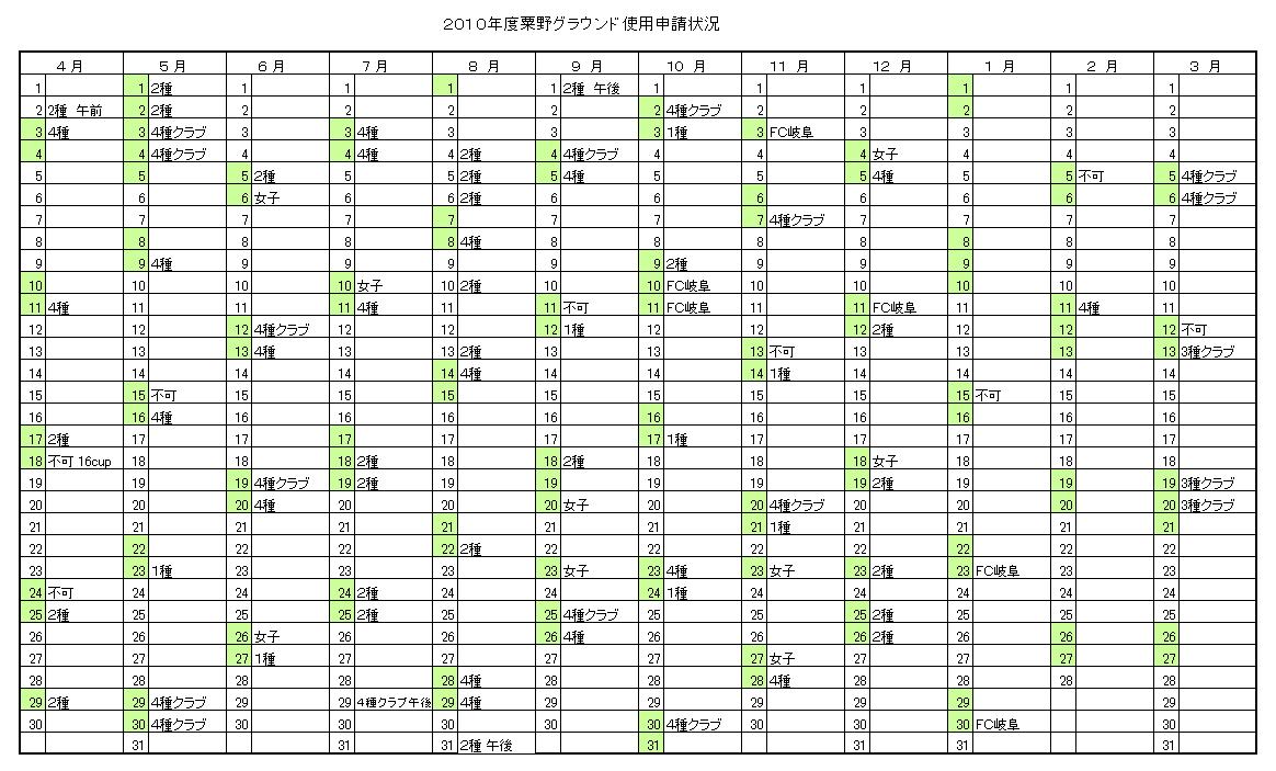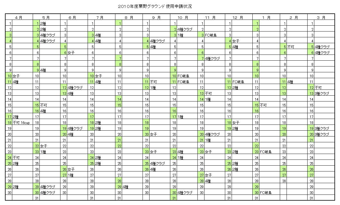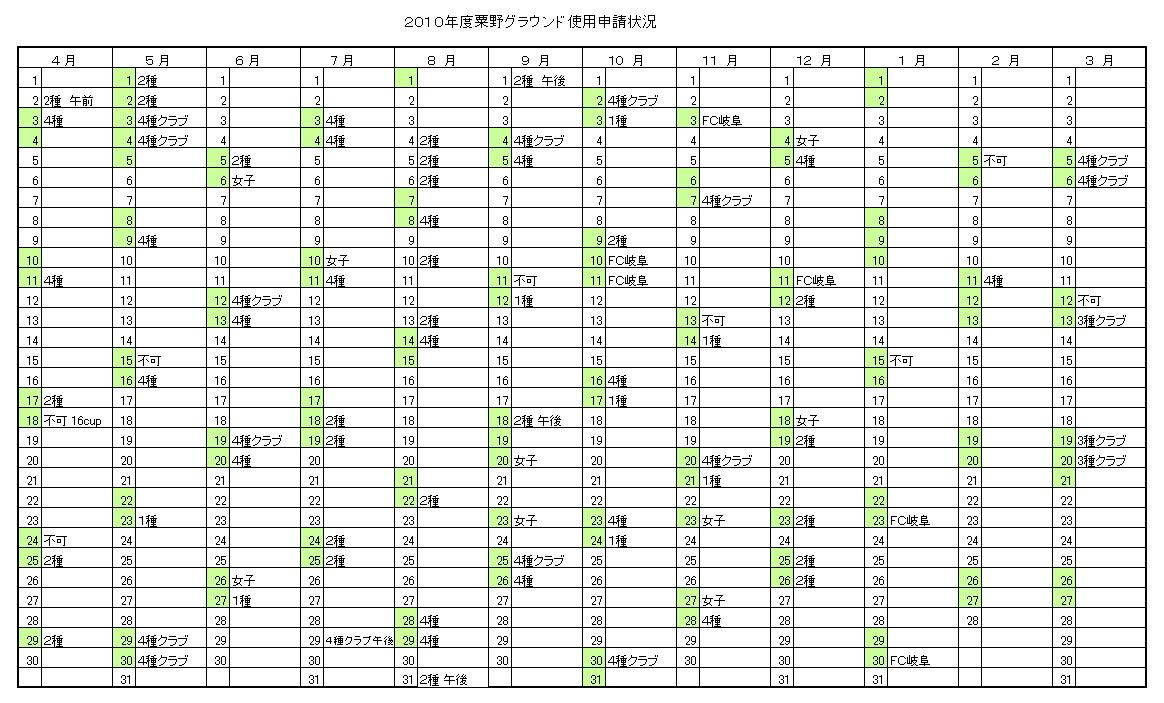 粟野グラウンド申請状況