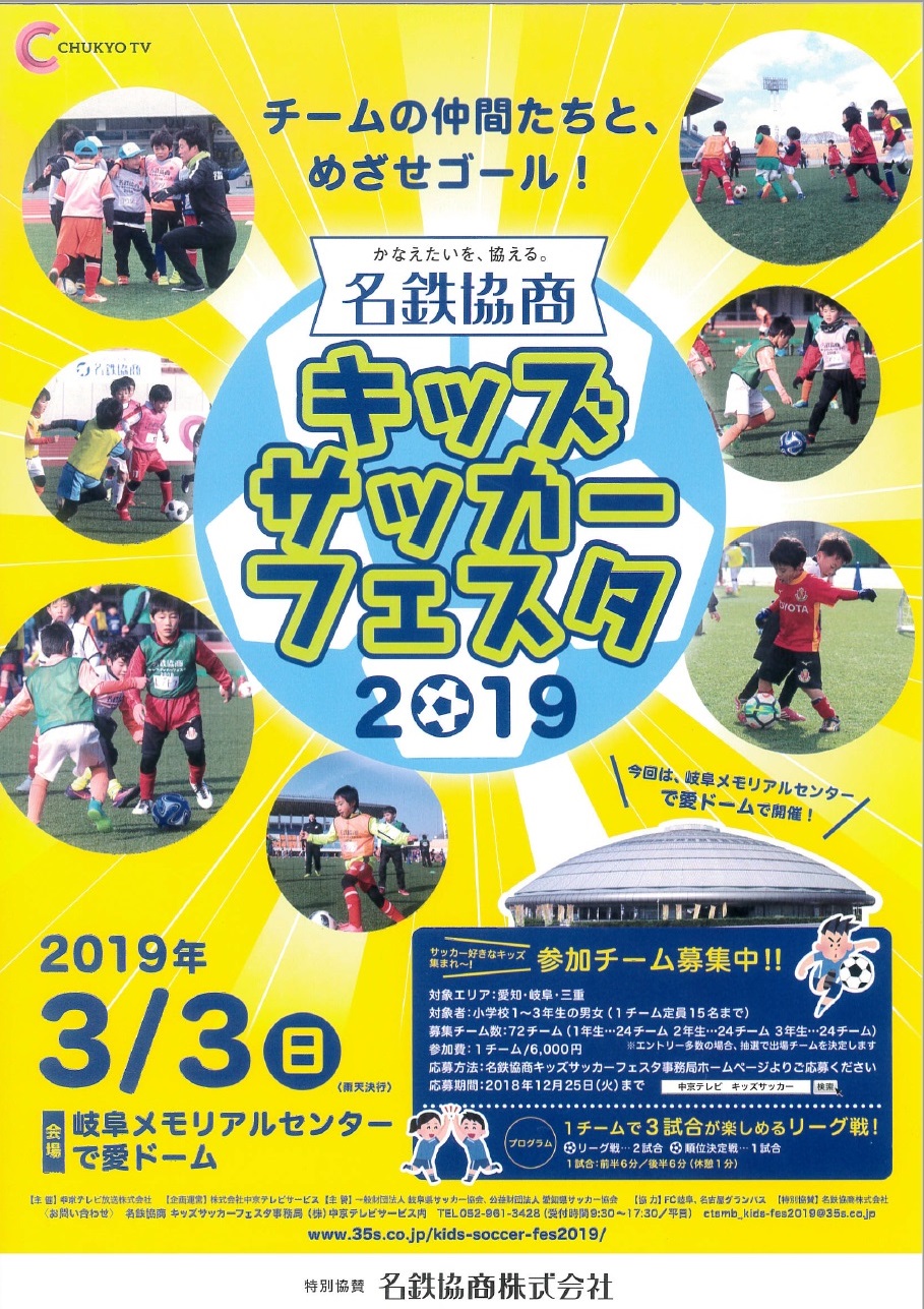 キッズサッカーフェスタ2019(2019.3.3で愛ドーム)参加チーム募集