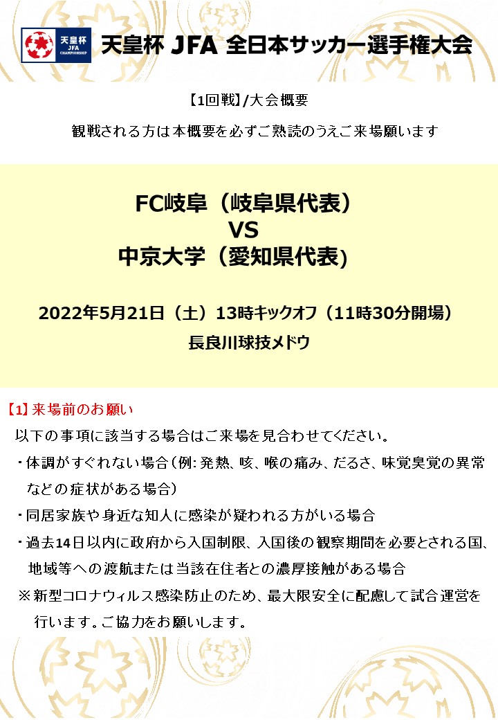 天皇杯JFA全日本サッカー選手権大会1回戦(FC岐阜vs中京大学)を観戦される方へ【5.16追記】