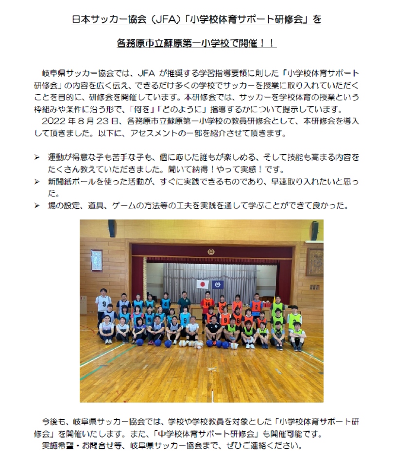 【技術委員会】蘇原第一小学校にて小学校体育サポート研修会を実施しました(8/23)