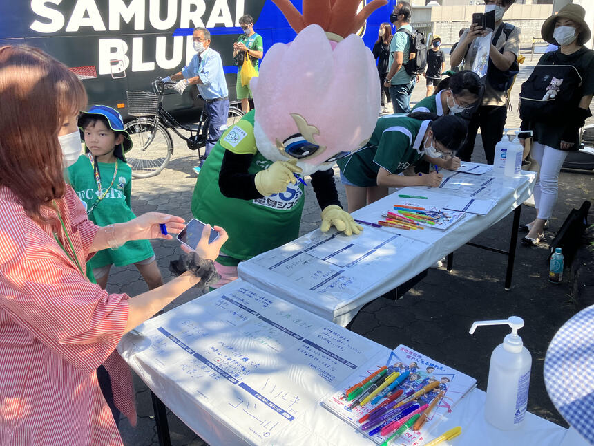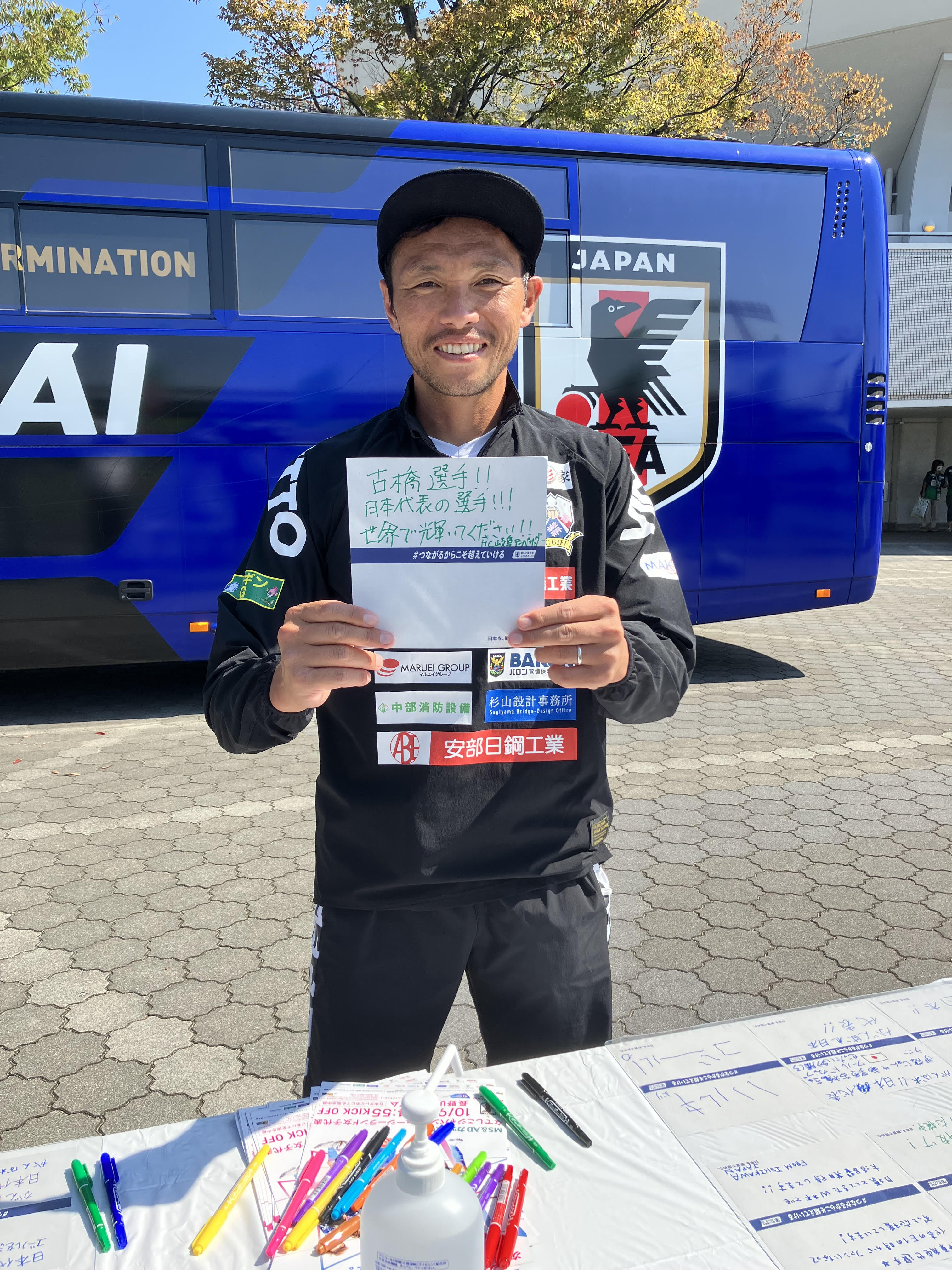 10月2日(日)に長良川競技場(補助競技場前・芝生広場)にSAMURAI BLUE日本代表チーム応援バスが来場しました。