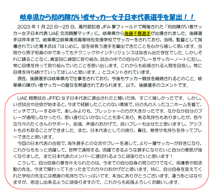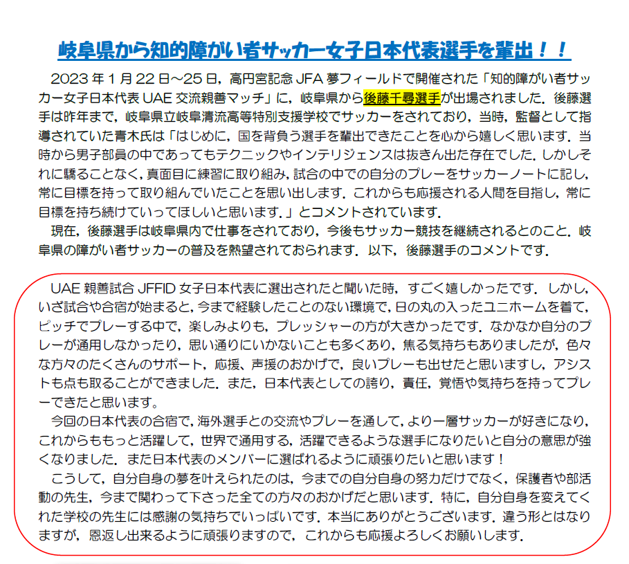 知的障がい者女子日本代表として「UAE交流大会」に出場