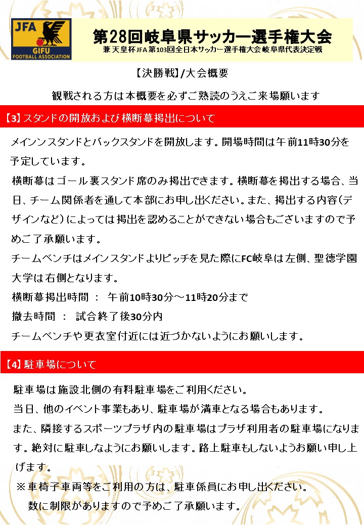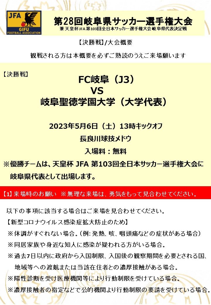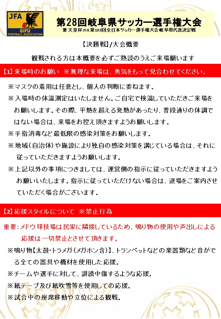 【事務局】第28回岐阜県サッカー選手権大会決勝戦観戦案内について