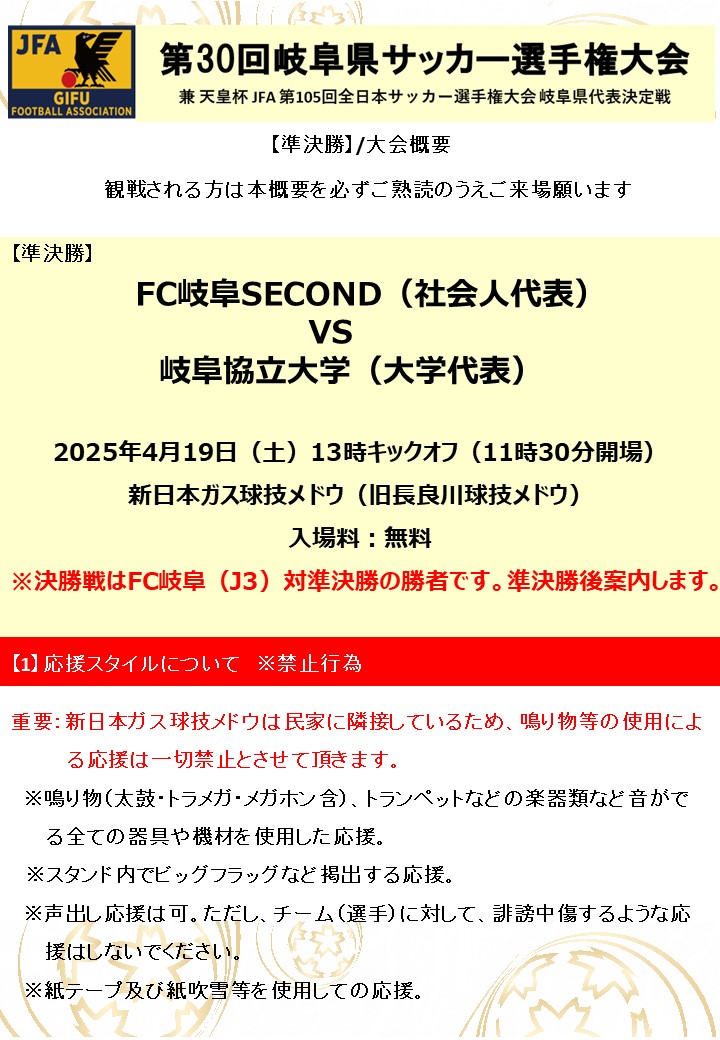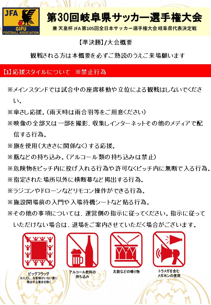 【事務局】第30回岐阜県サッカー選手権大会準決勝観戦案内について