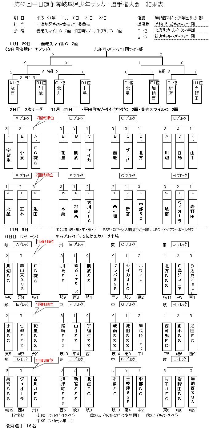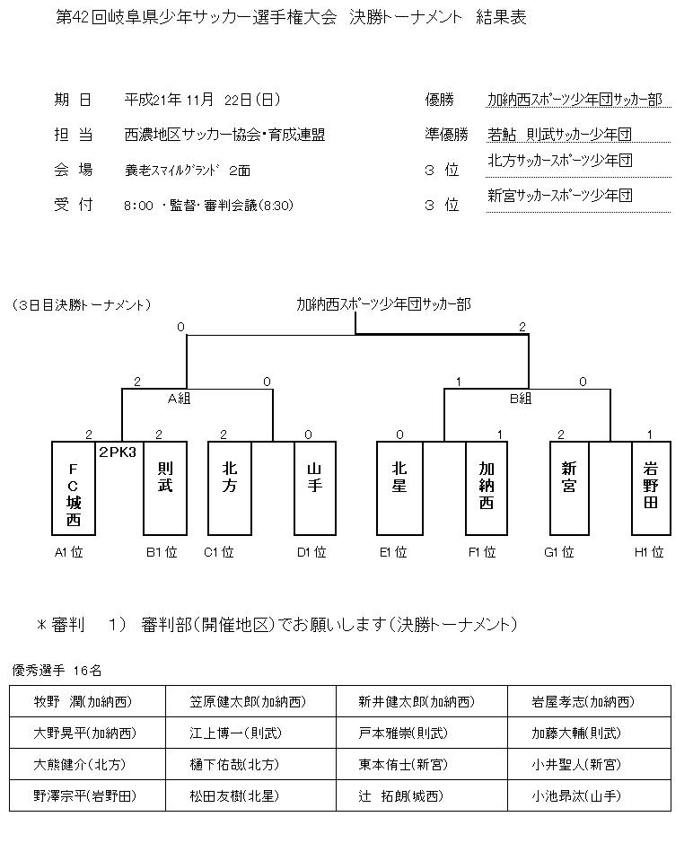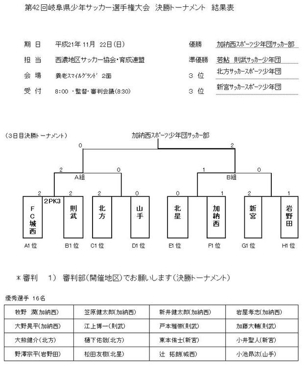 第42回岐阜県少年サッカー選手権大会 最終結果