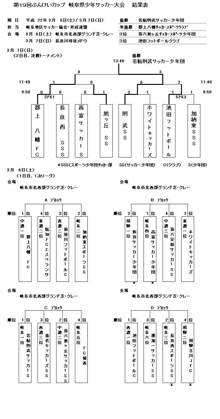 第19回ぶんけいカップ 岐阜県少年サッカー大会 結果