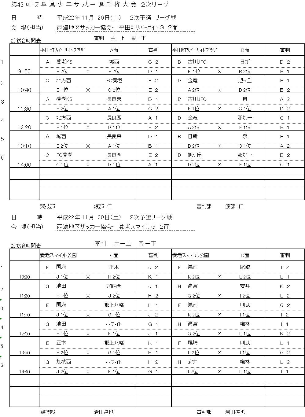 第43回岐阜県少年サッカー選手権大会 2次リーグ組合せ