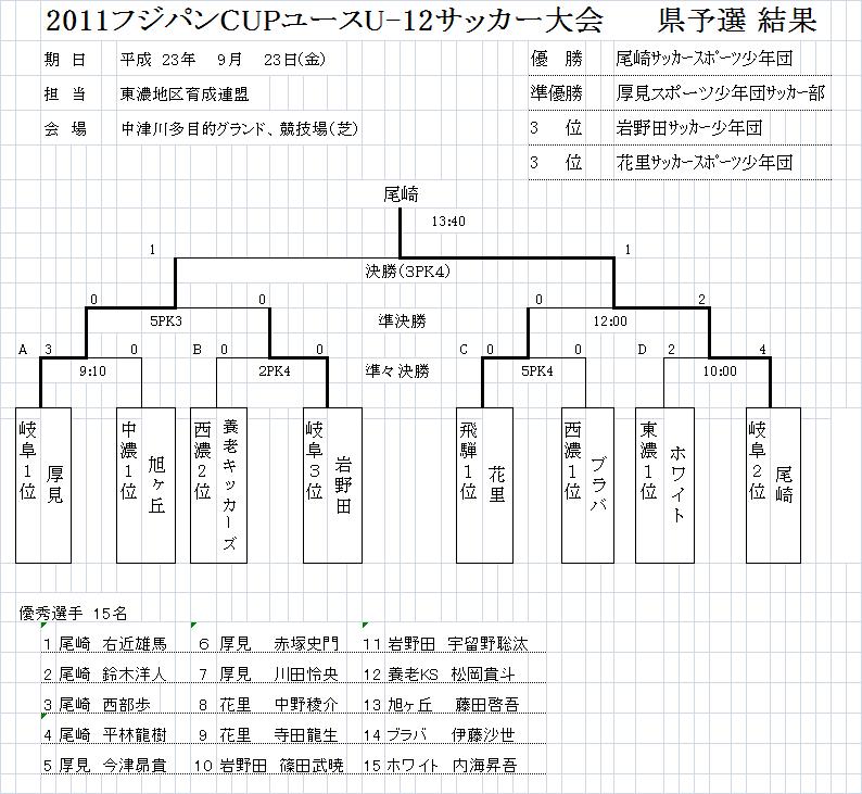 2011フジパンCUPユースU-12サッカー大会 県予選 結果