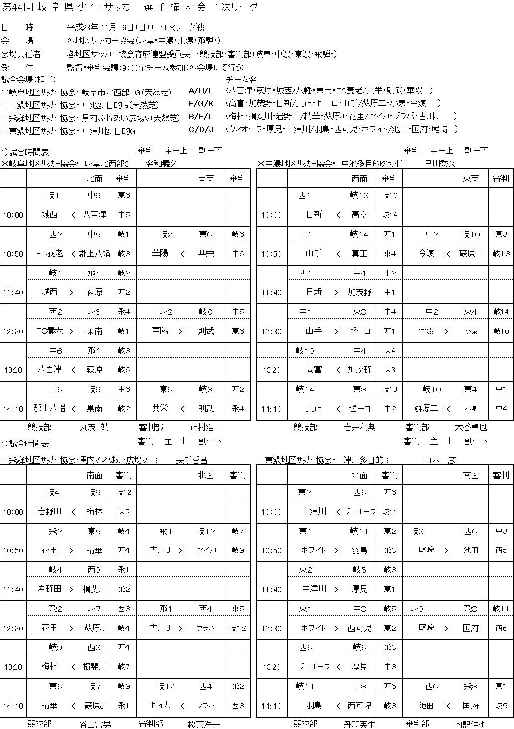 第44回県少年サッカー選手権大会 組合せ(1次リーグ)