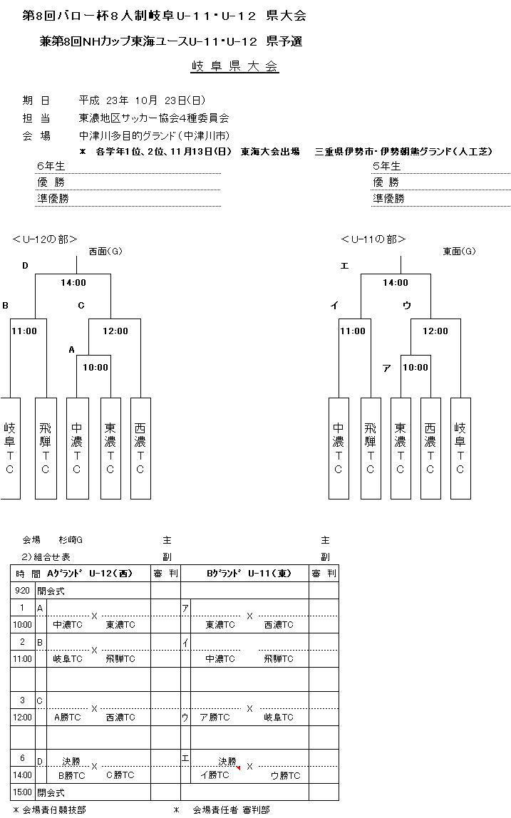 第8回バロー杯県大会兼NHカップ東海大会県予選 組合せ