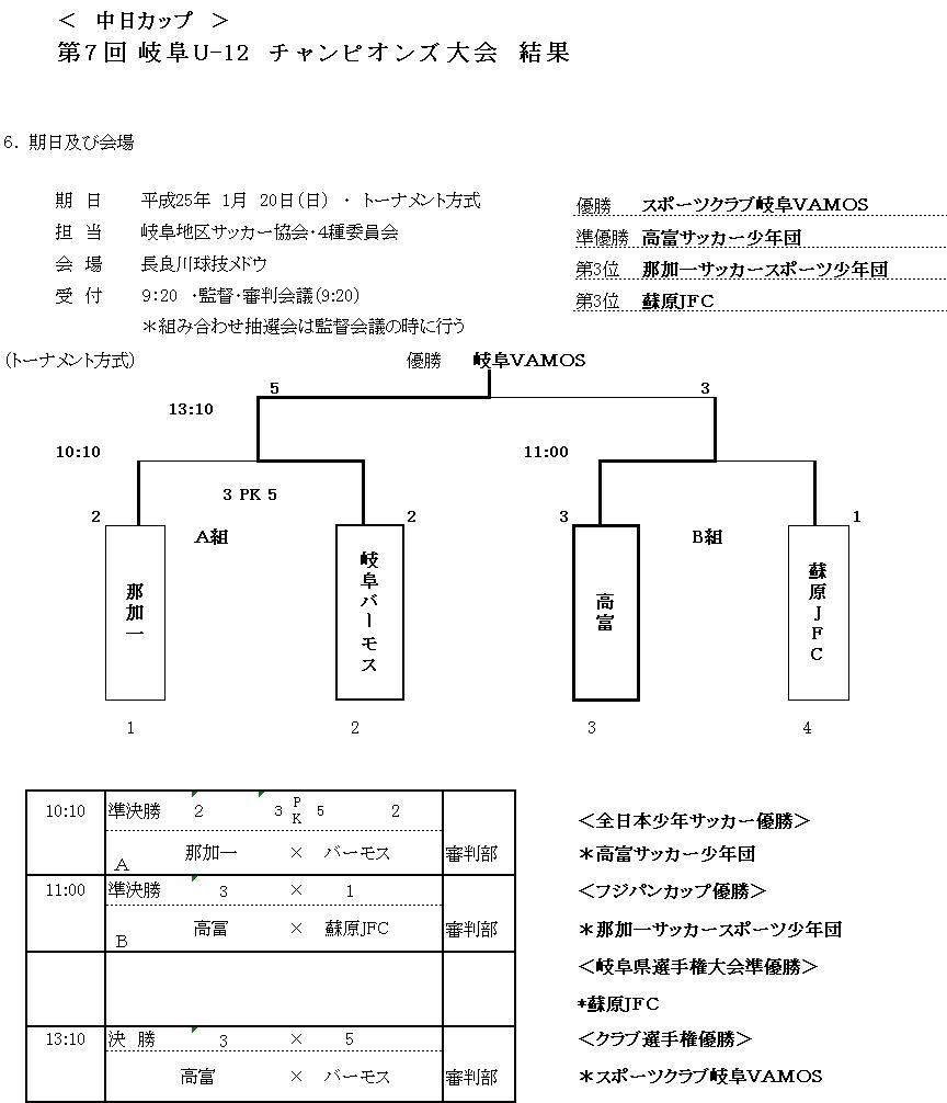 <中日カップ> 第7回岐阜U-12チャンピオンズ大会 結果