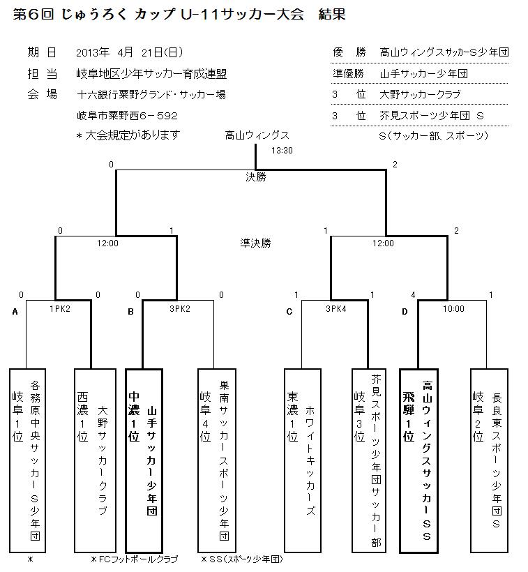 JA全農杯小学生選抜サッカーIN東海大会 結果