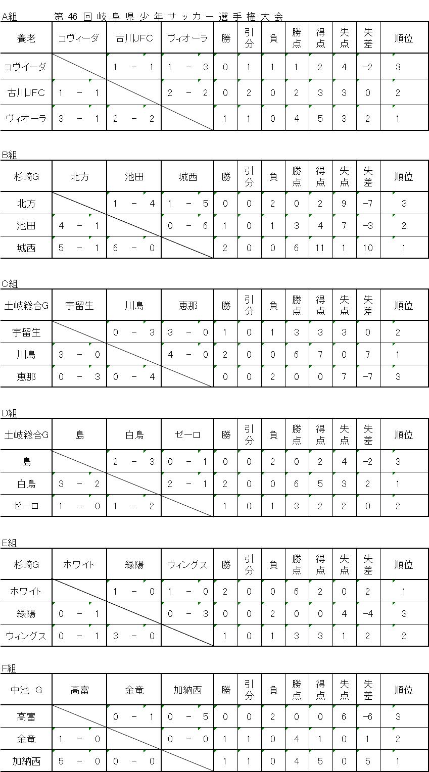 第46回県少年サッカー選手権大会 1次リーグA,B,C,D,E,F 結果
