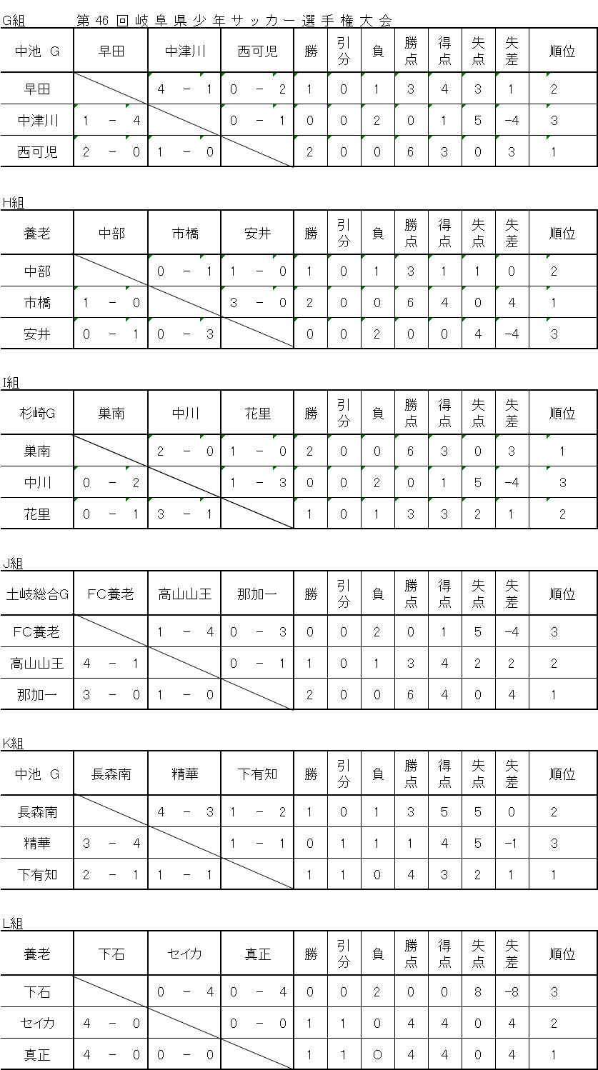 第46回県少年サッカー選手権大会 1次リーグG,H,I,J,K,L 結果