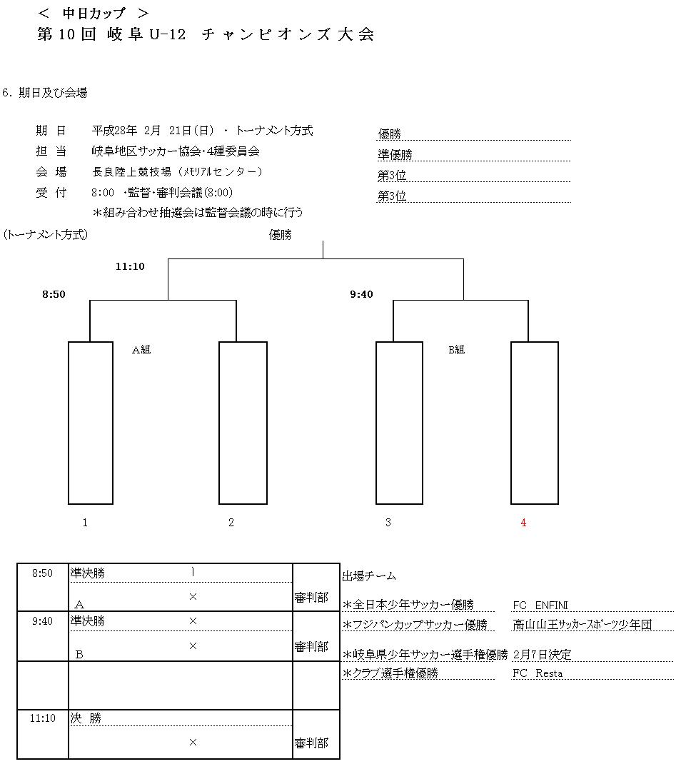 <中日カップ> 第10回岐阜U-12チャンピオンズ大会