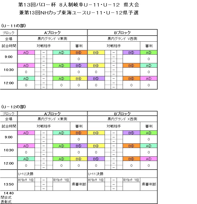 2016バロー杯県大会(NHカップ東海予選)組合せ