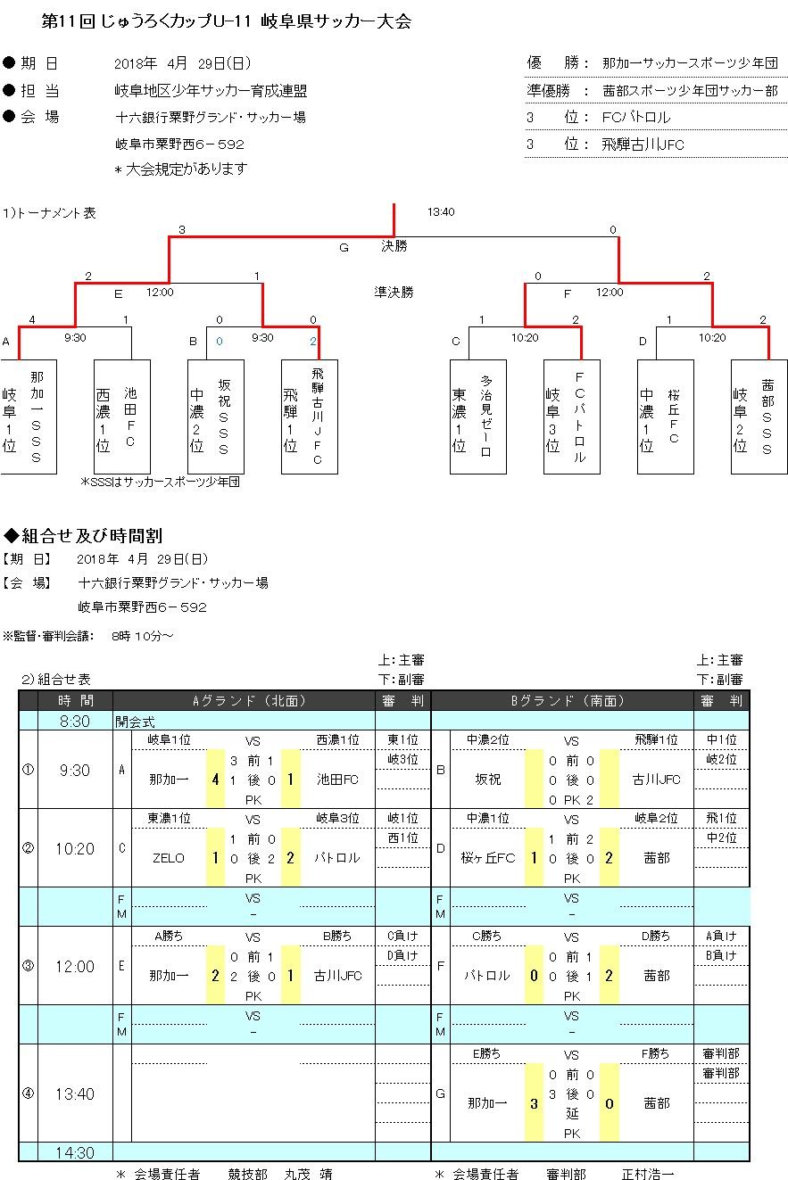第11回じゅうろくカップU-11サッカー岐阜県大会 結果