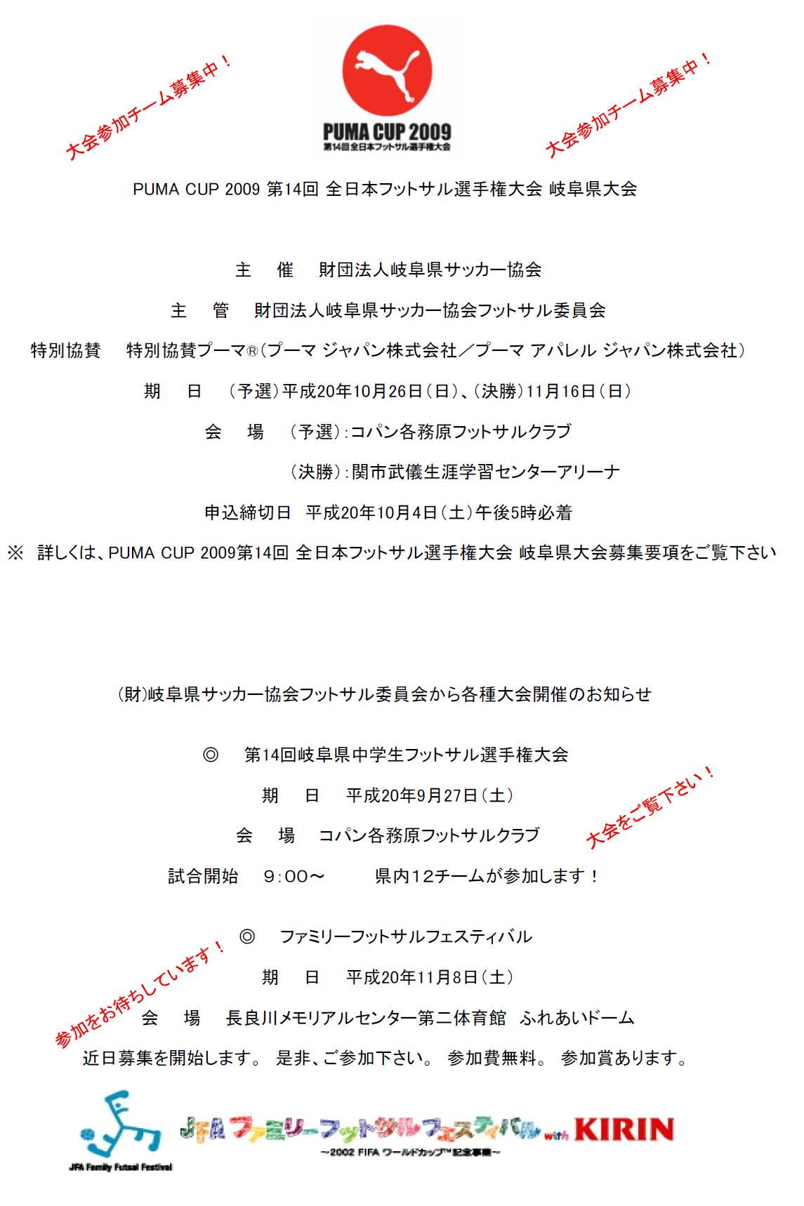 - 名 称 PUMA CUP 2009 第14 回 全日本フットサル選手権大会 岐阜県大会