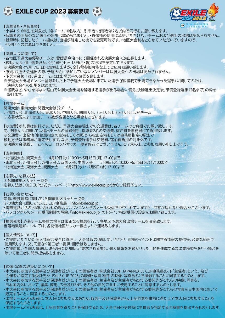 2023年8月20日(日)、岐阜長良川競技場にて、「EXILE CUP 2023 東海地域大会」を開催します。
