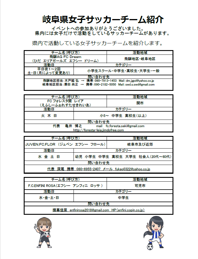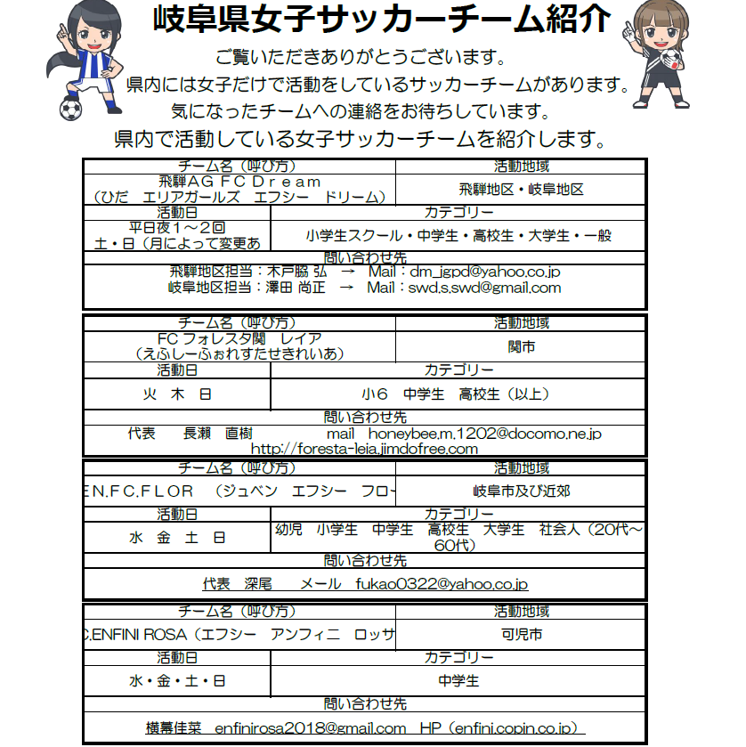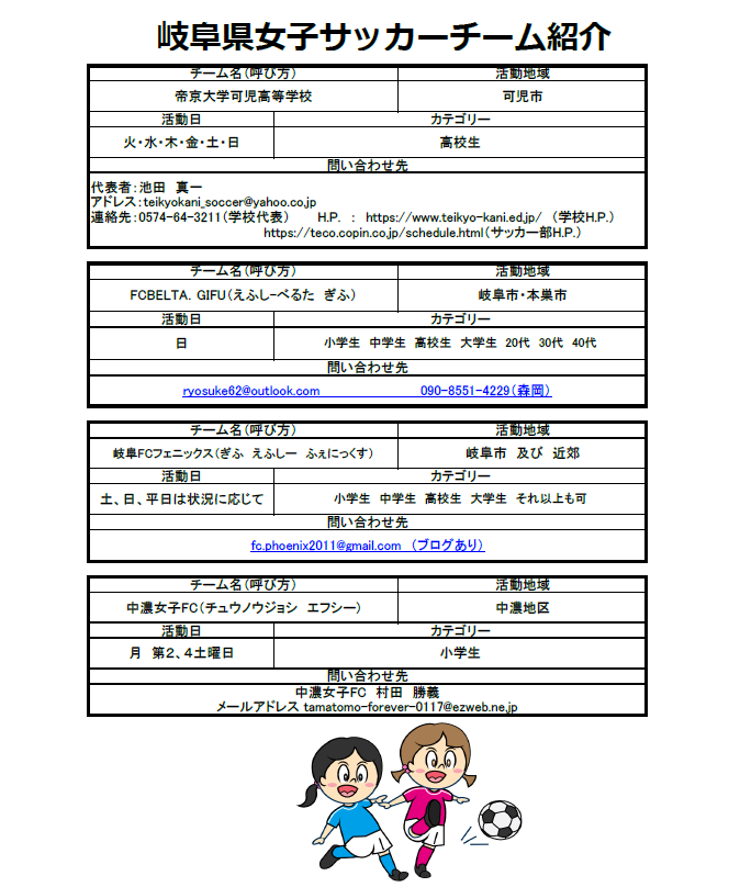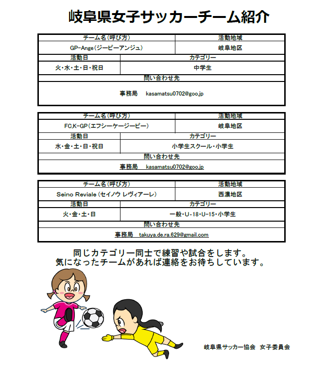 【女子委員会】女子チーム紹介(女子チーム一覧)