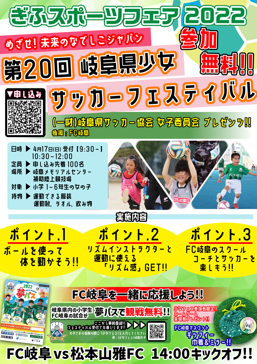 1 目的:岐阜県の女子サッカーの普及と活性化を目的として、少女を対象としたサッカー教室を開催する