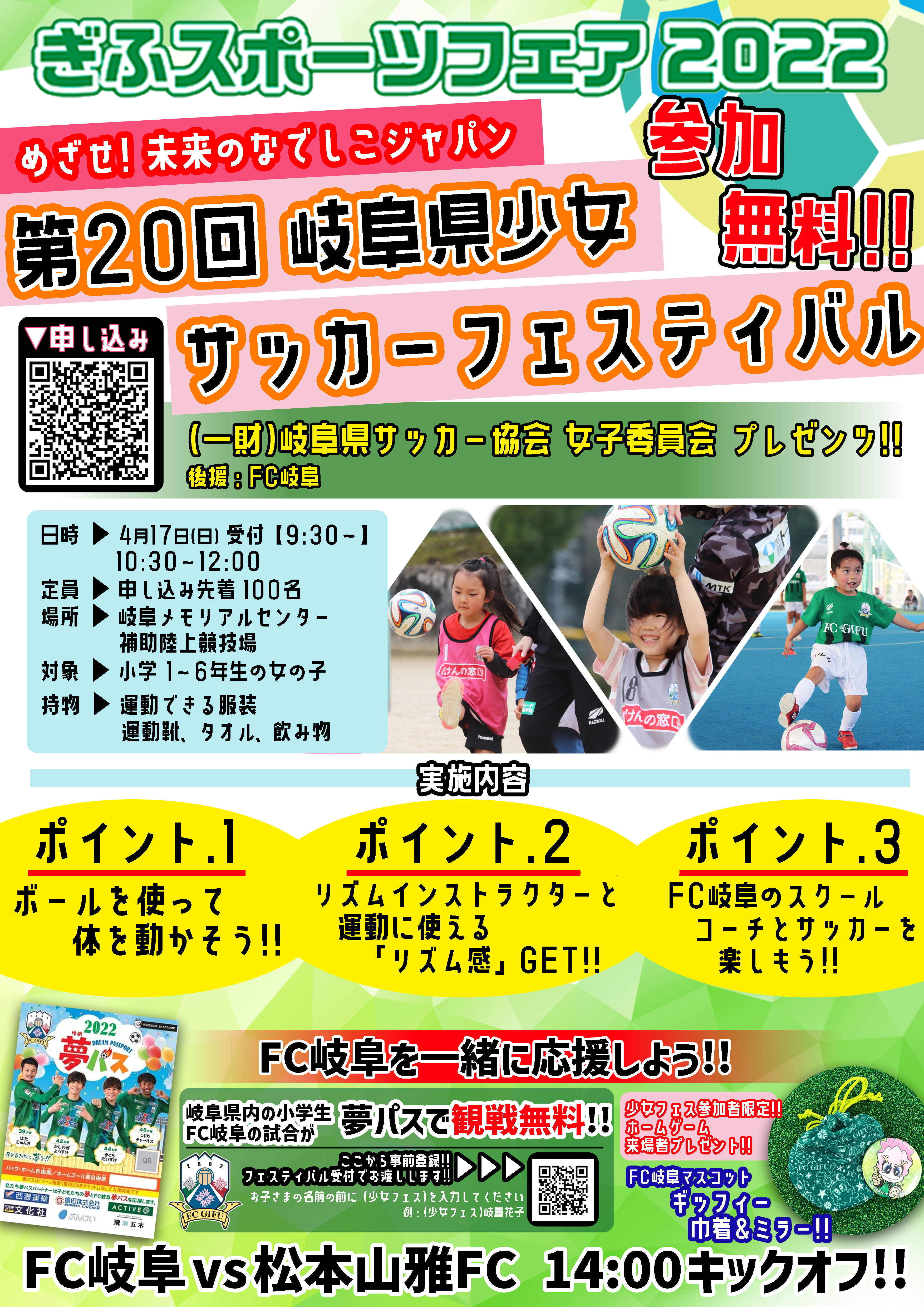1 目的:岐阜県の女子サッカーの普及と活性化を目的として、少女を対象としたサッカー教室を開催する