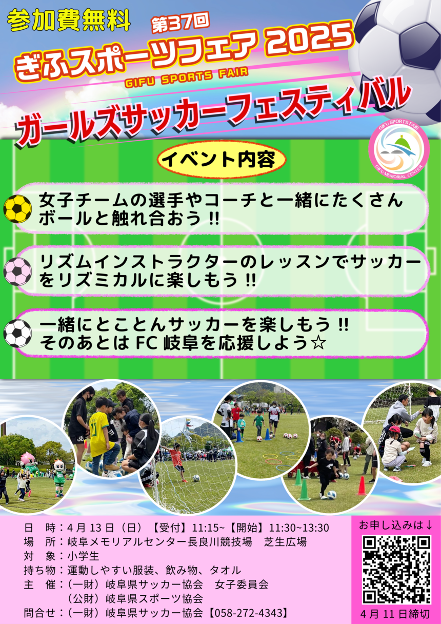 1 目的:岐阜県の女子サッカーの普及と活性化を目的として、女性を対象としたサッカー体験会を開催する
