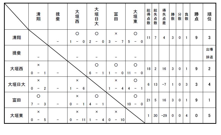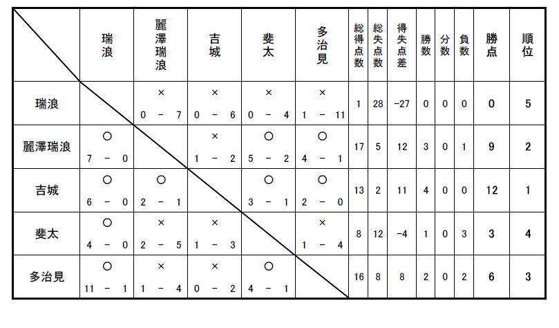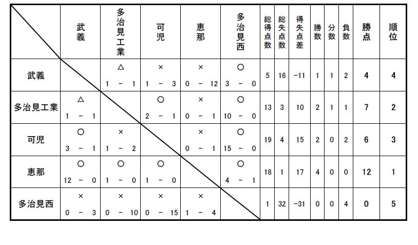 (1)得失点差 (2)総得点数 (3)該当チーム同士の対戦結果 (4)抽選