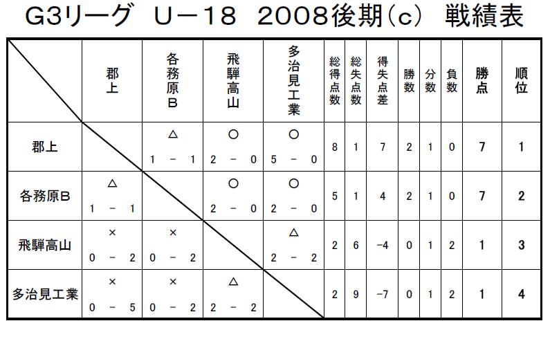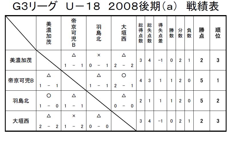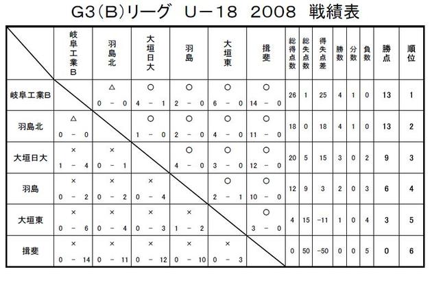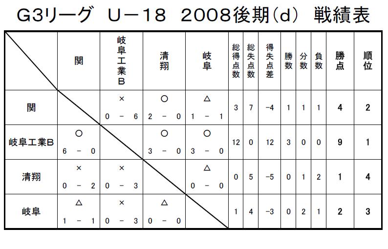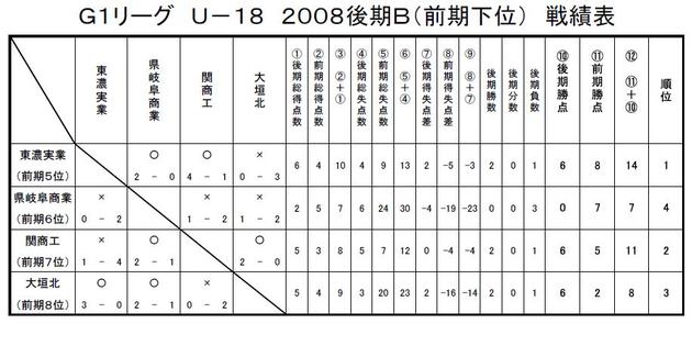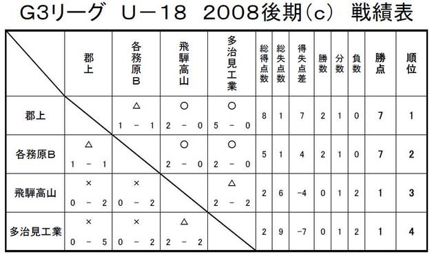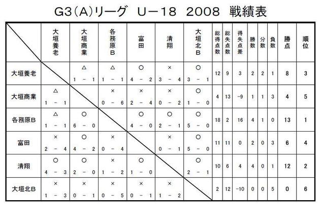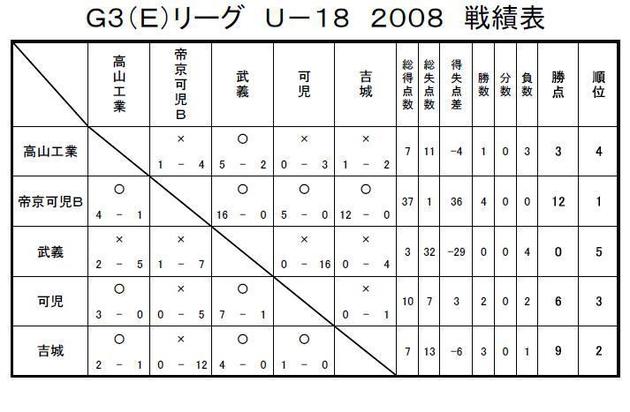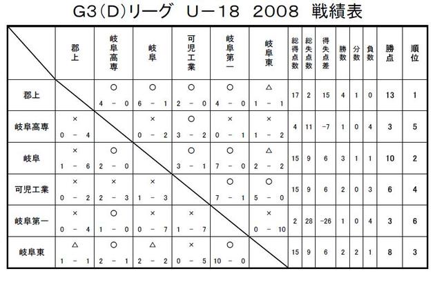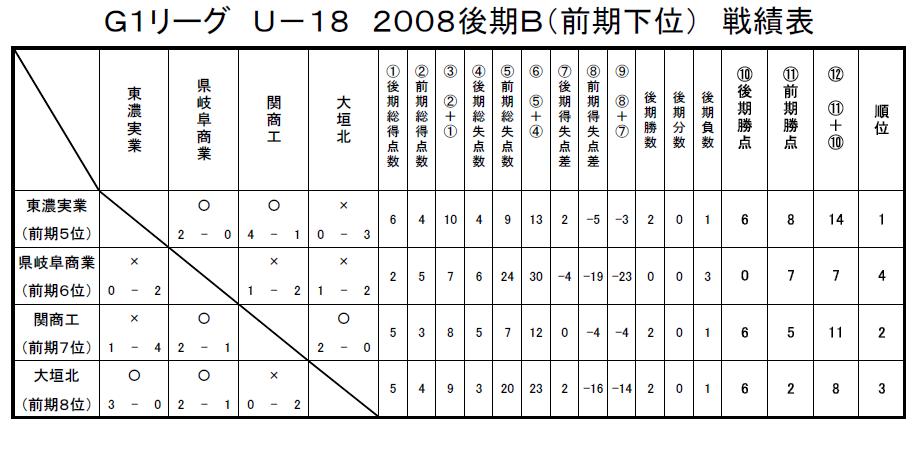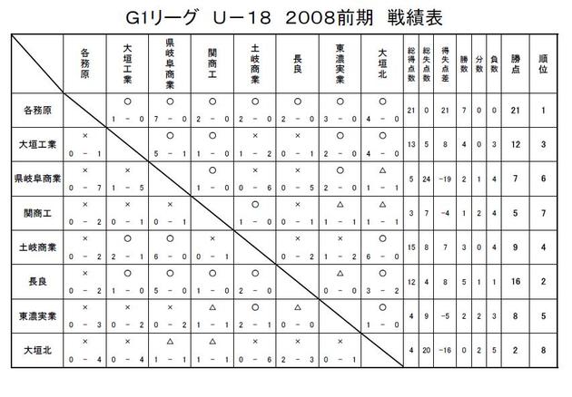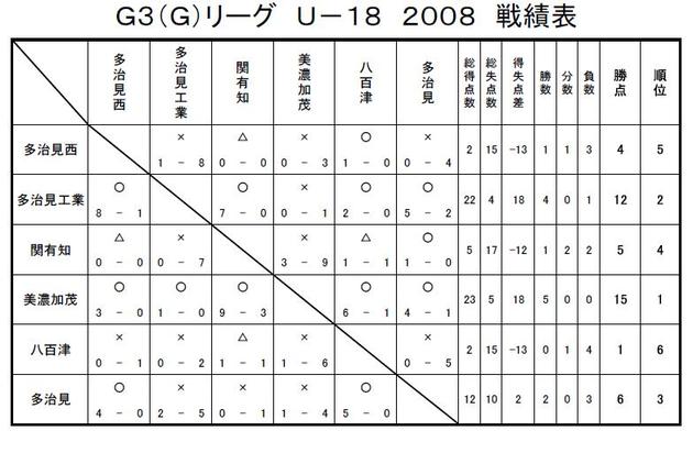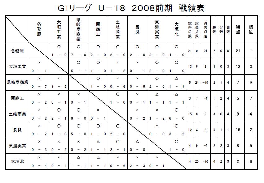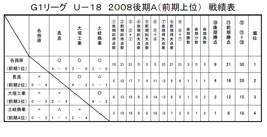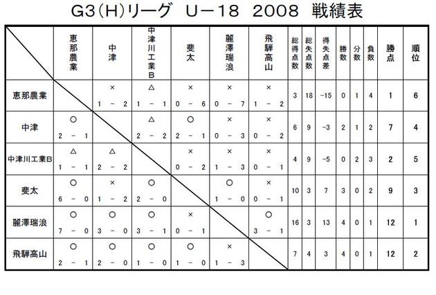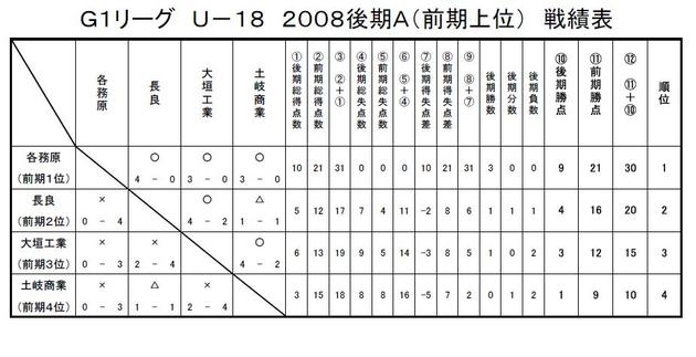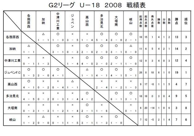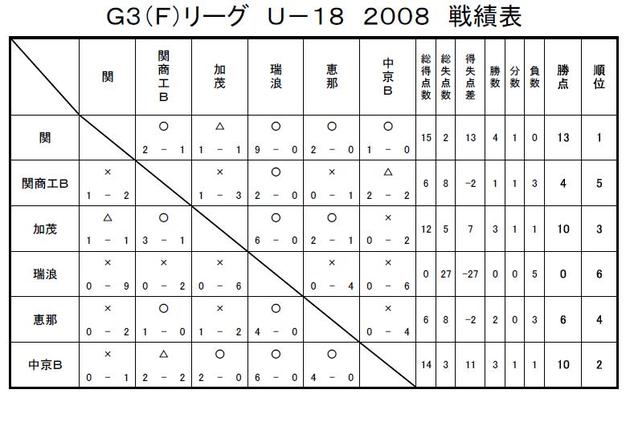 GリーグU-18 2008 結果
