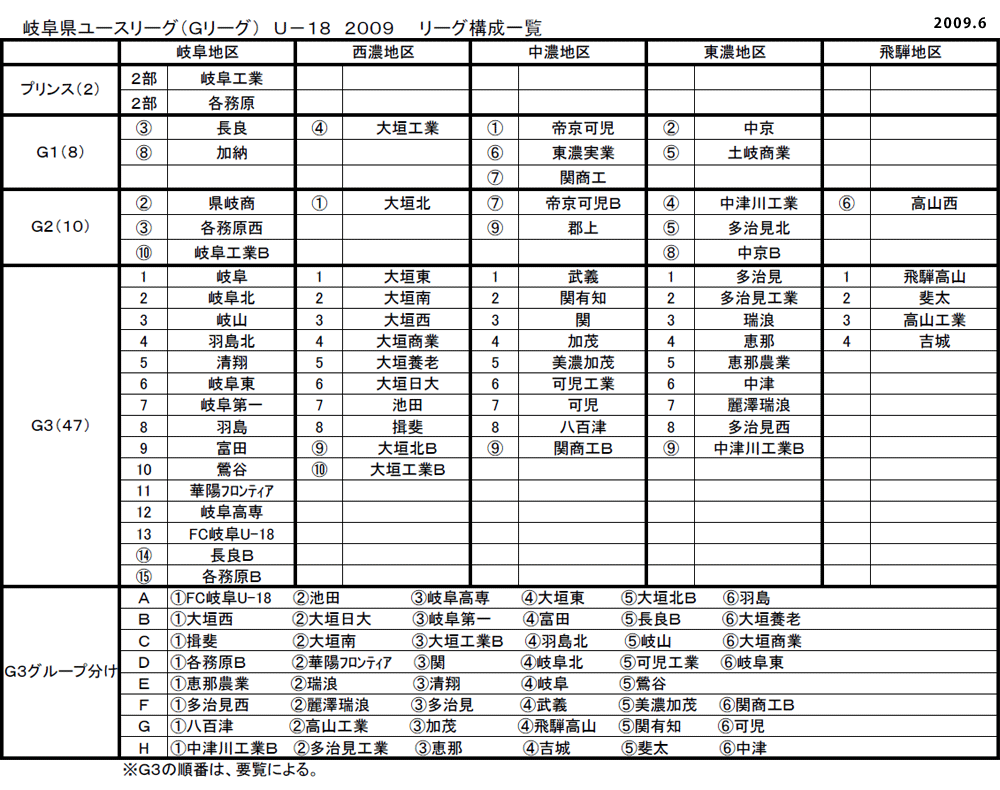 下記のように、第6回GリーグU-18のグループ分けが決まりました。