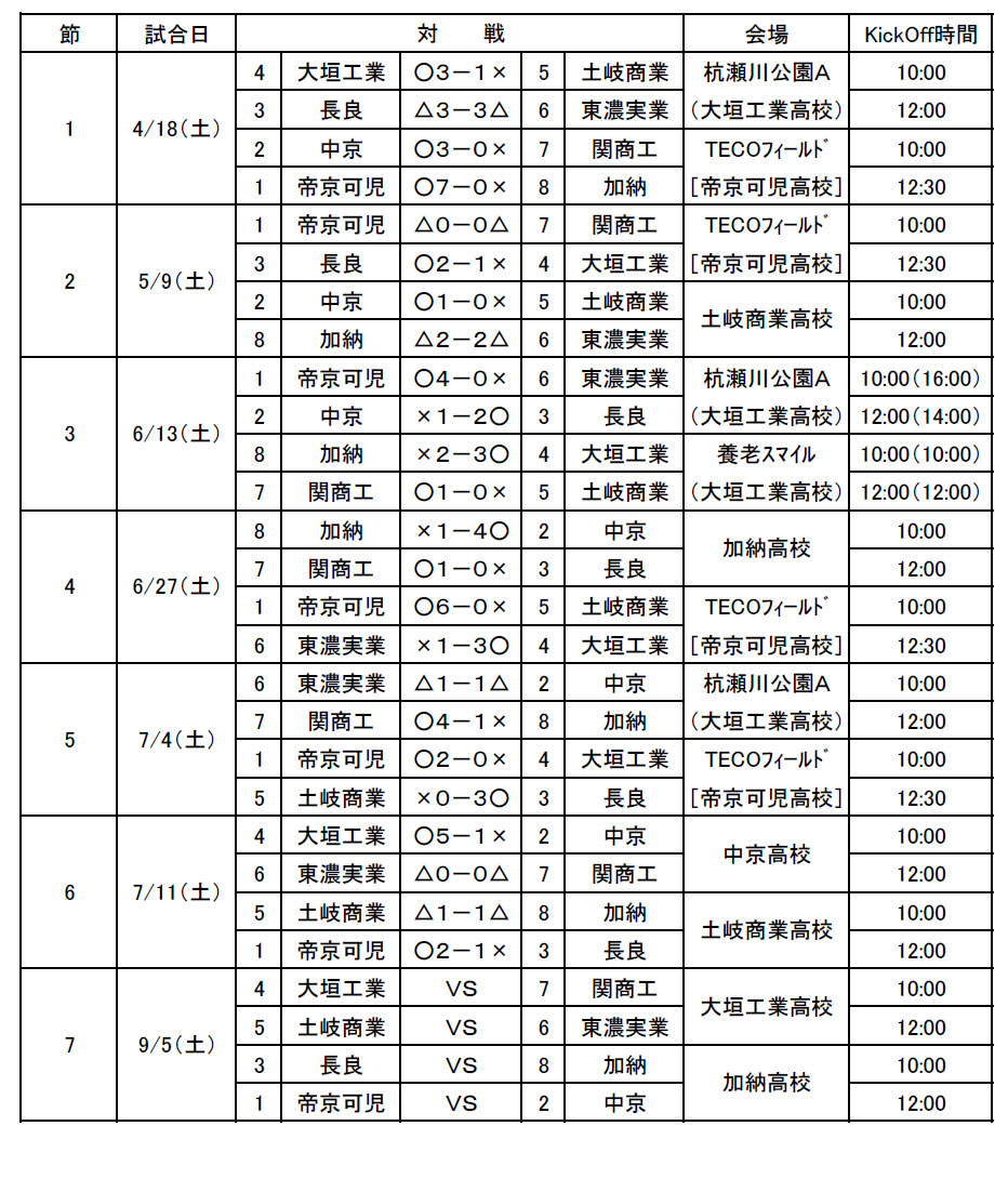 第6回GリーグU-18 結果
