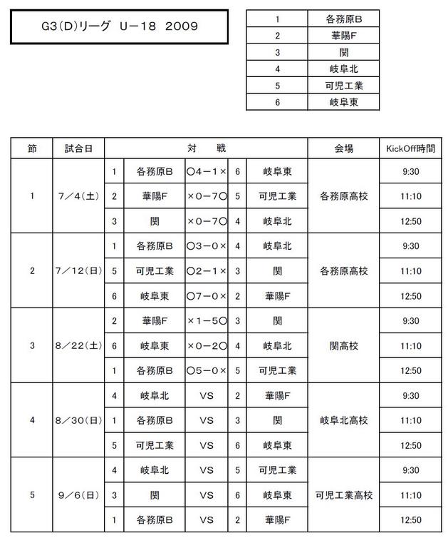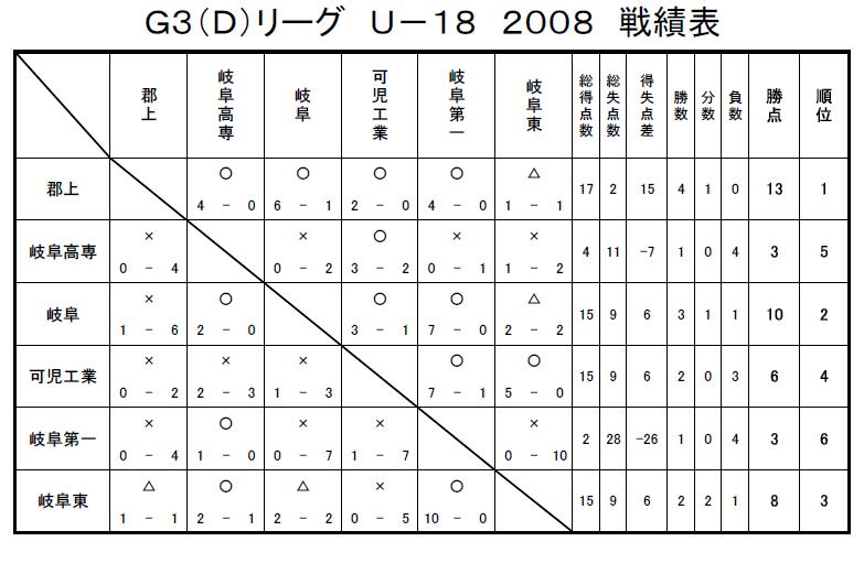 第6回GリーグU-18 G3Dグループ 8月22日結果