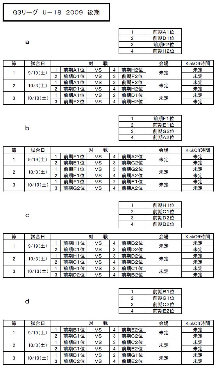 第6回GリーグU-18 G3後期予定
