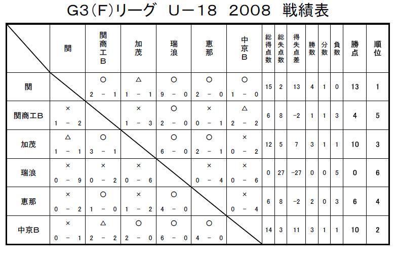 第6回GリーグU-18 G3Fグループ 9月6日結果