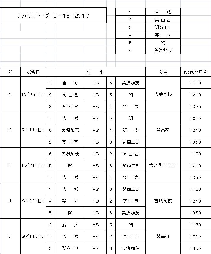 G3 Gリーグ U-18 2010 日程表