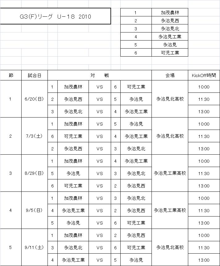 変更 G3(F)リーグ U-18 2010