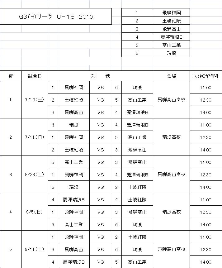 G3 Hリーグ U-18 2010 日程表