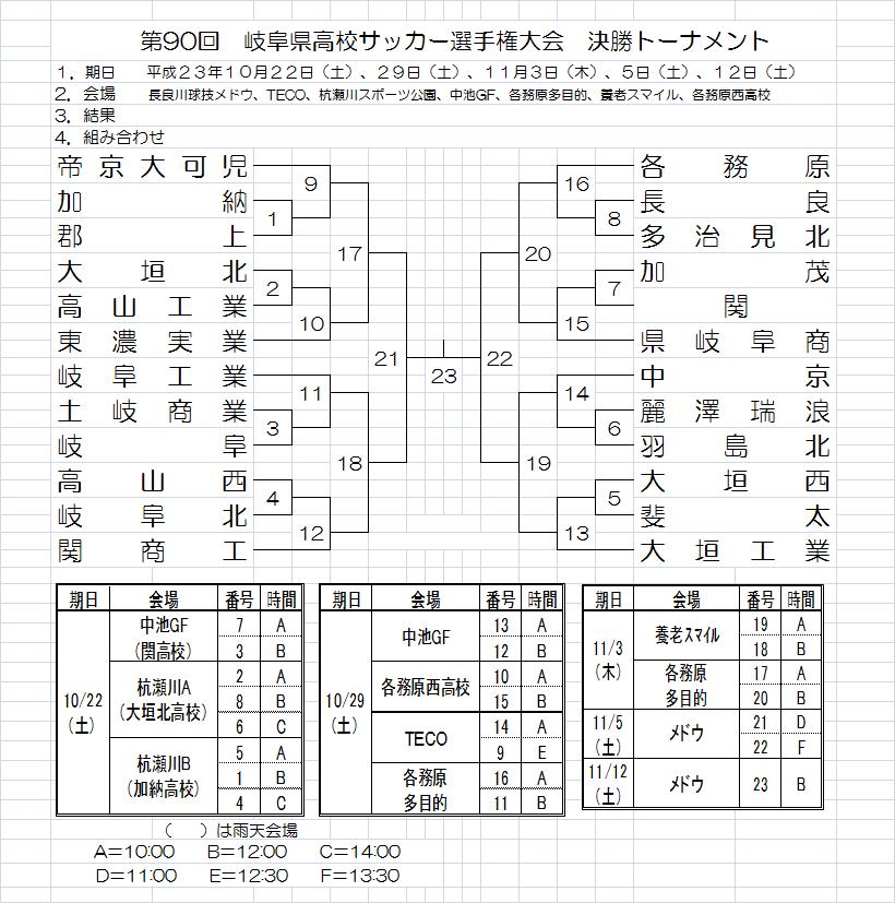 第89回全国高校サッカー選手権大会 岐阜県大会組合せ