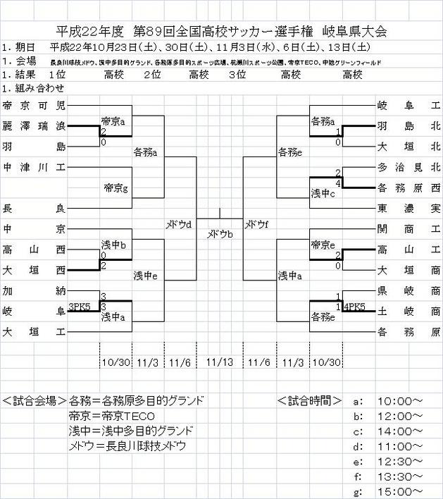 第89回全国高校サッカー選手権大会岐阜県大会 1回戦結果