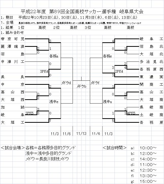 第89回全国高校サッカー選手権大会岐阜県大会 2回戦結果