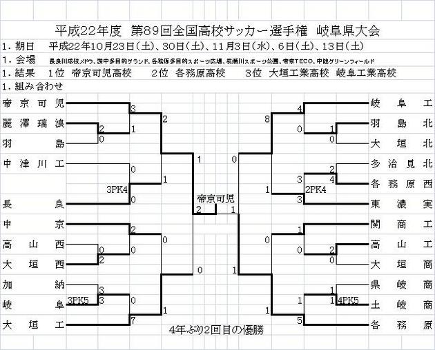 第89回全国高校サッカー選手権大会岐阜県大会 結果