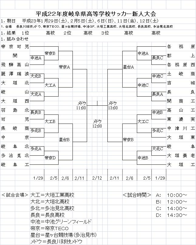 平成22年度岐阜県高等学校サッカー新人大会組合