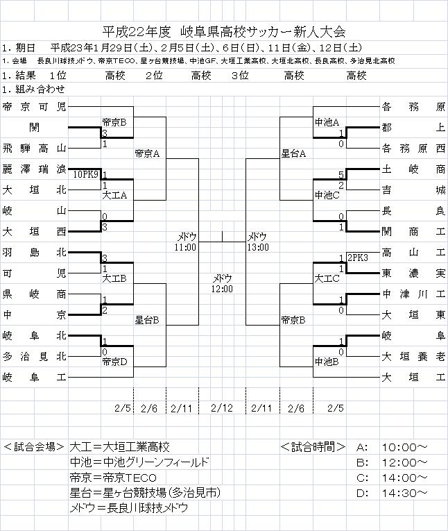 平成22年度 岐阜県高校サッカー新人大会 1回戦結果