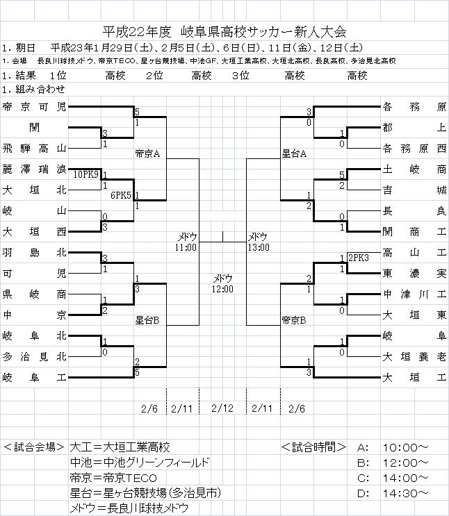 H22年度 岐阜県高校サッカー新人大会 2回戦結果