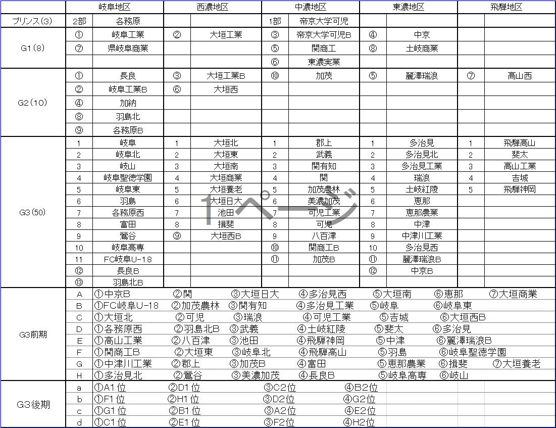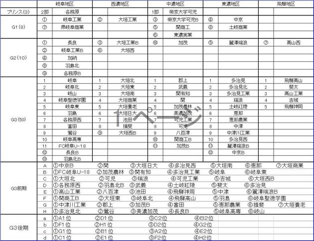 岐阜県ユースリーグ(Gリーグ)Uー18 2011 リーグ構成一覧