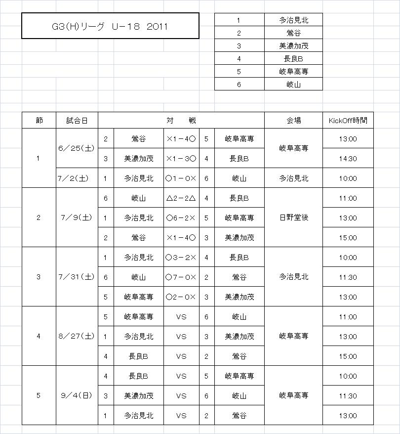 G3 Hリーグ 第3節 結果