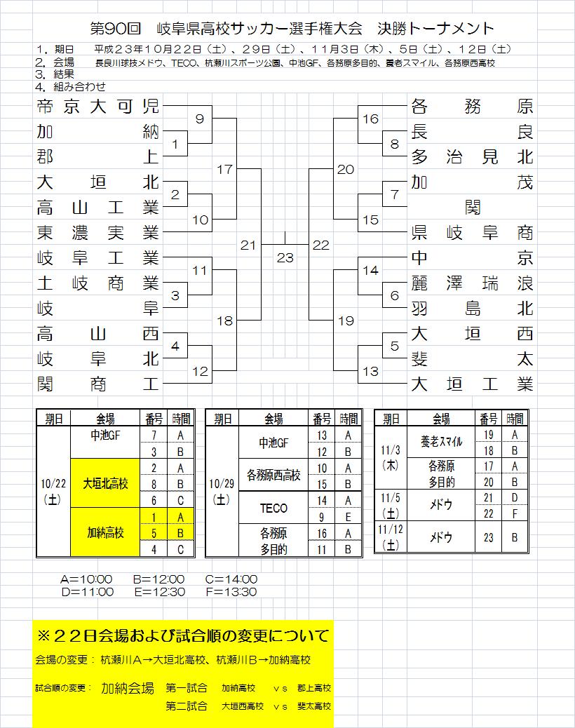10月22日:選手権大会試合会場および試合順の変更について