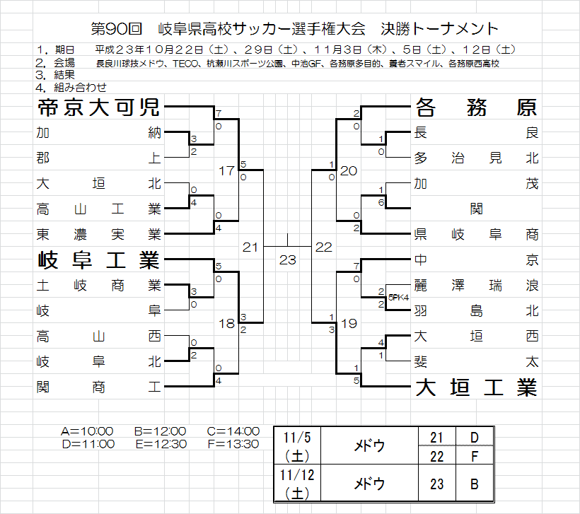 第90回 岐阜県高校サッカー選手権大会 3回戦結果